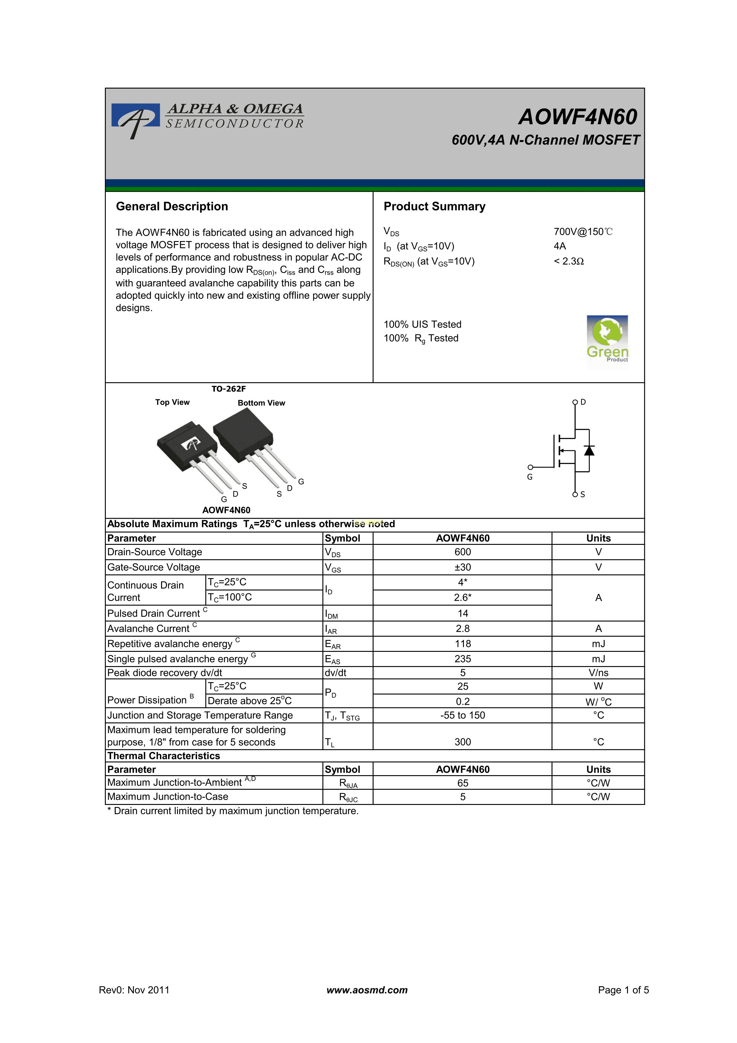 AOWF4N60PDF规格书,中英文下载
