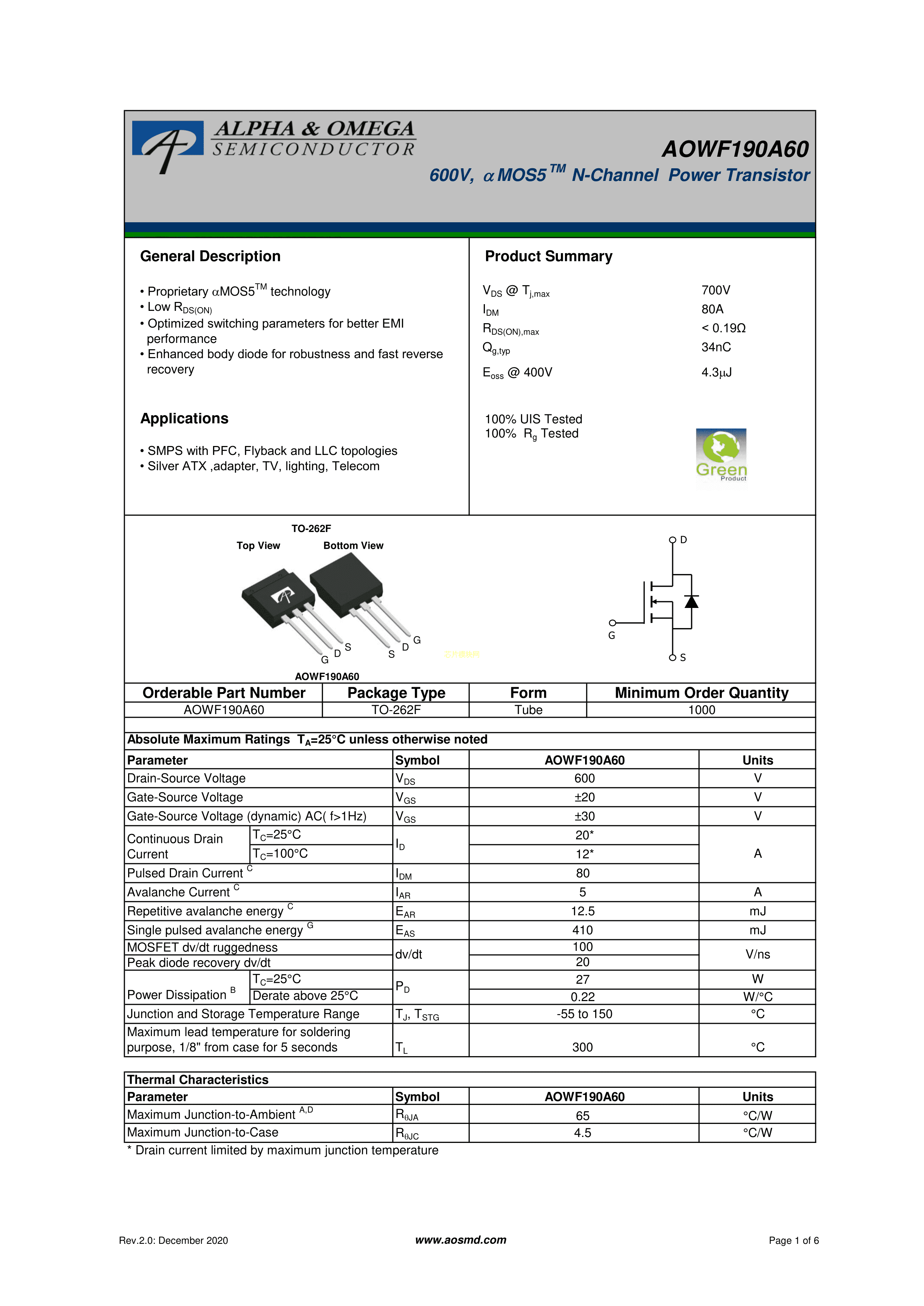 AOWF190A60PDF规格书,中英文下载
