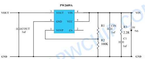 USB口OVP过压保护芯片型号:PW2609A PW2609A是一颗常用于USB口端,做输入的过压保护芯片,输入耐压40V,OVP过压保护可默认6.1V或者可调OVP设置选择,地内阻,可达通过3A电流, ...