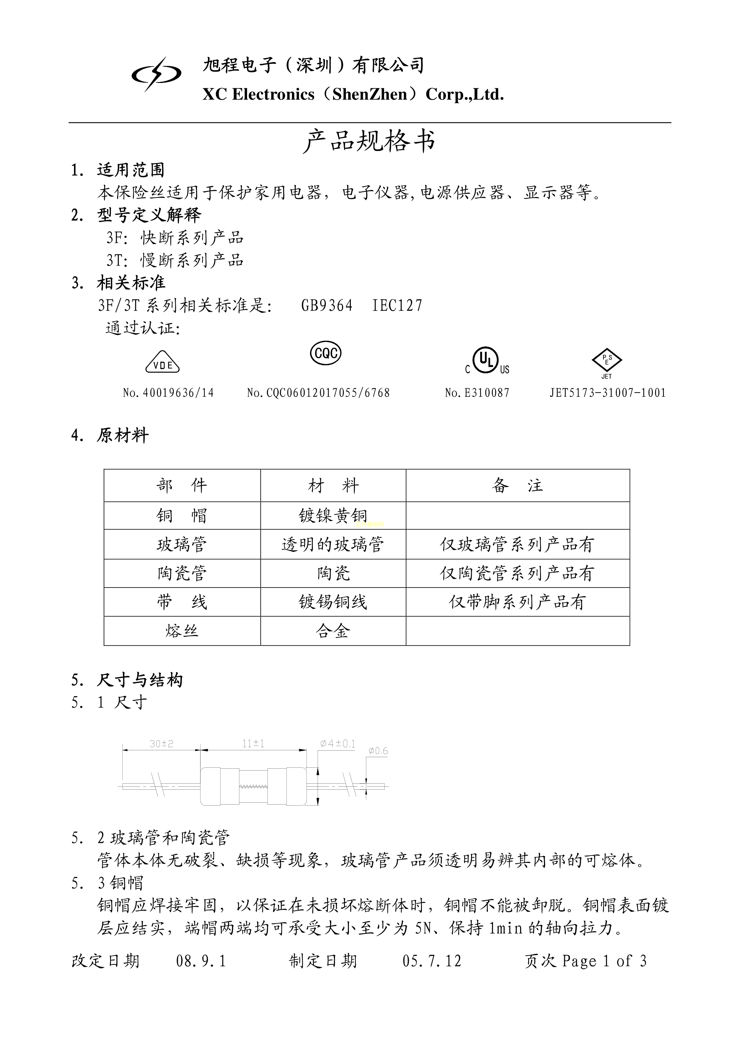 3T.4000242000ZLQGM数据手册轴向引线3.6x10mm封装xcfuse(旭程)PDF规格书,中英文下载