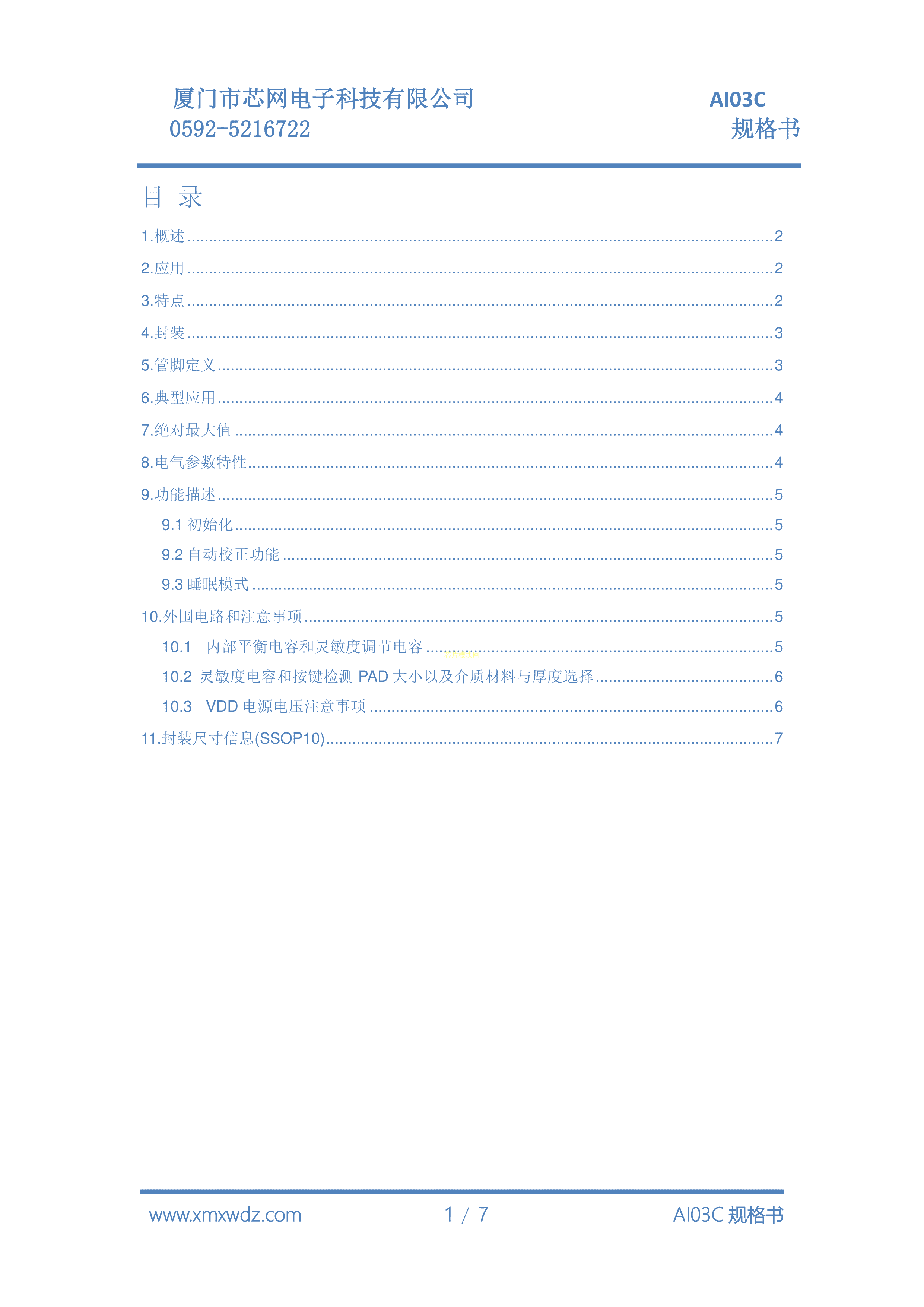 AI03Cssop10数据手册SSOP-10封装Samwing(芯网)PDF规格书,中英文下载