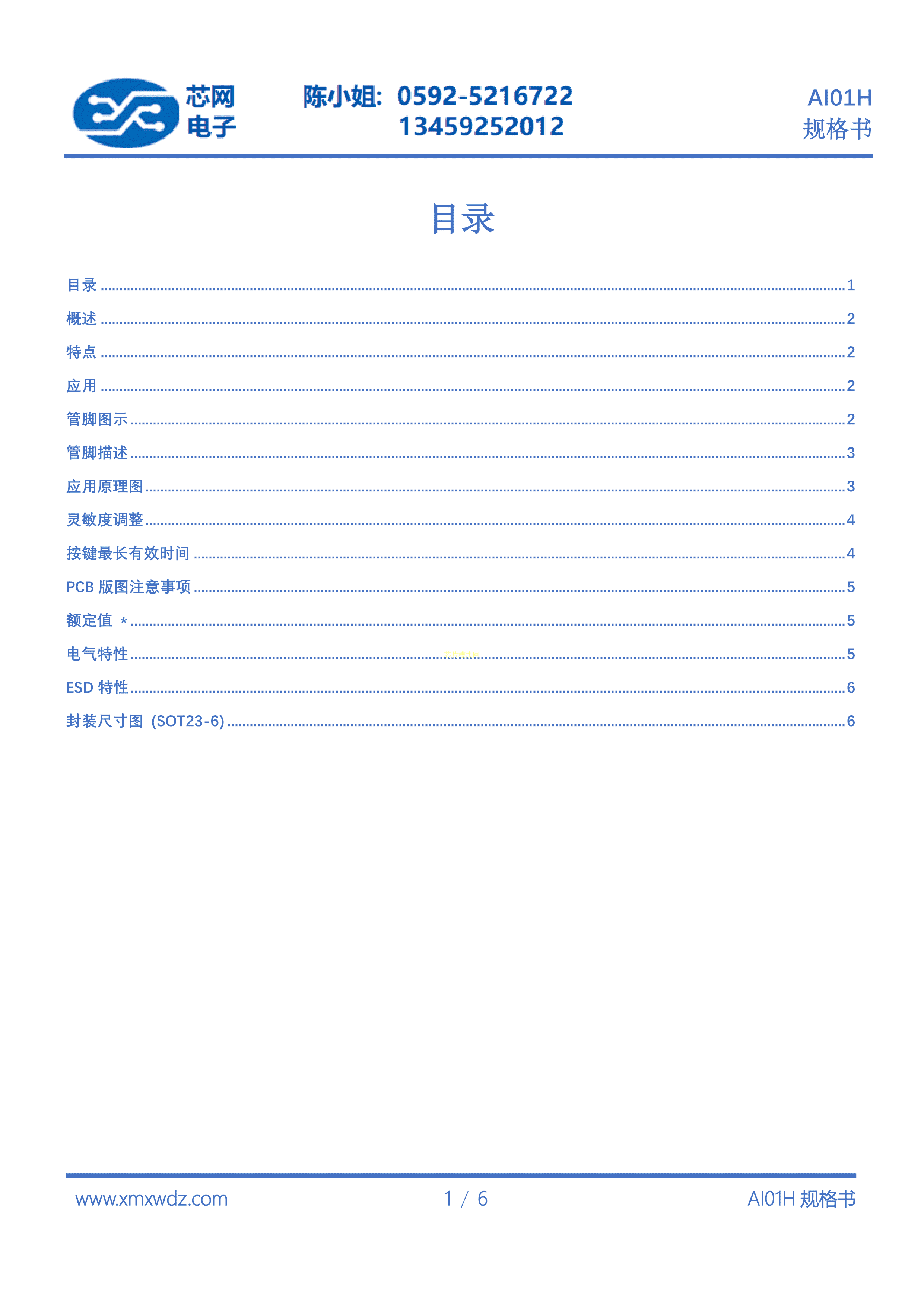 AI01H数据手册SOT23-6封装Samwing(芯网)PDF规格书,中英文下载