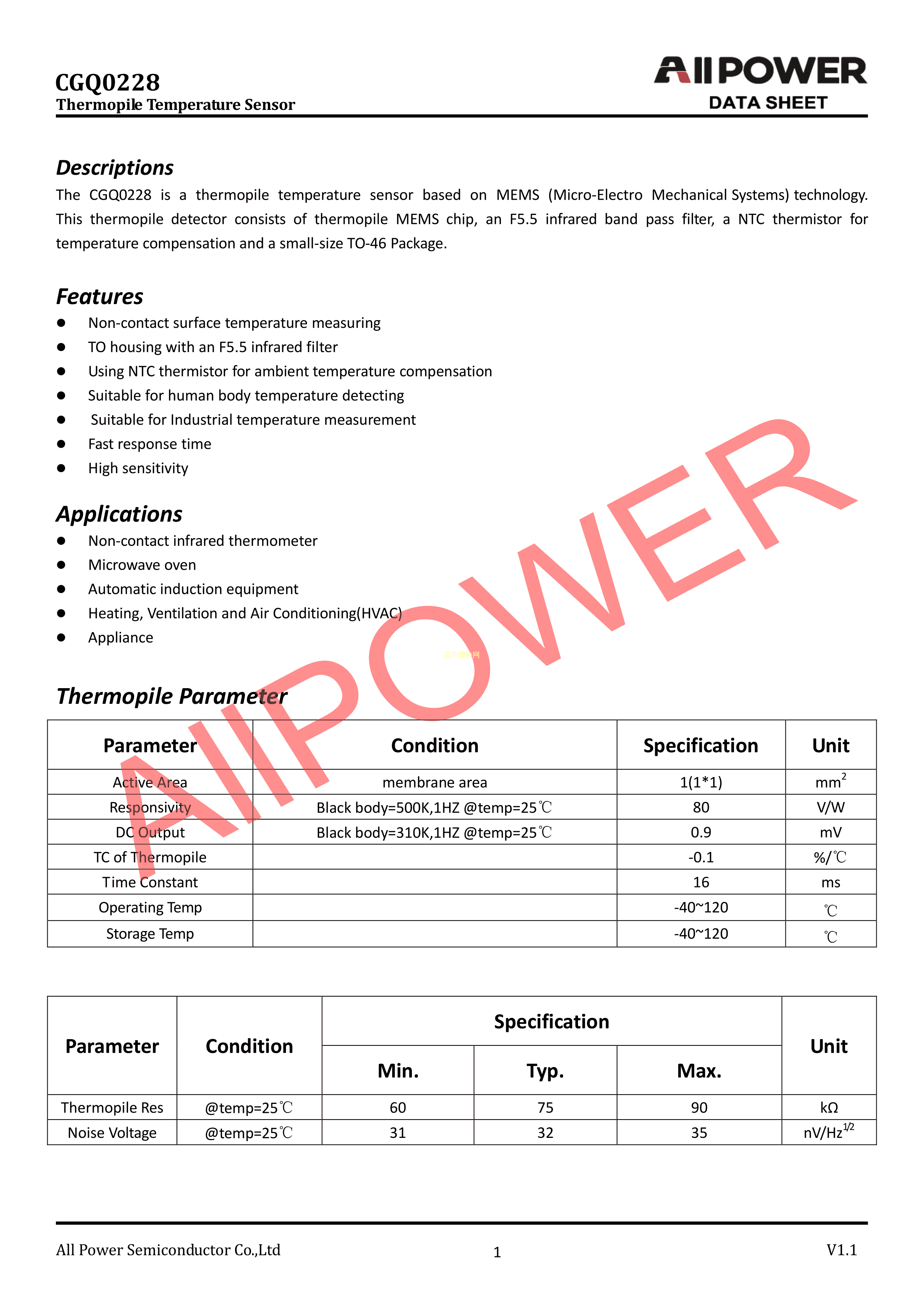 CGQ0228数据手册TO-46封装ALLPOWER(铨力)PDF规格书,中英文下载