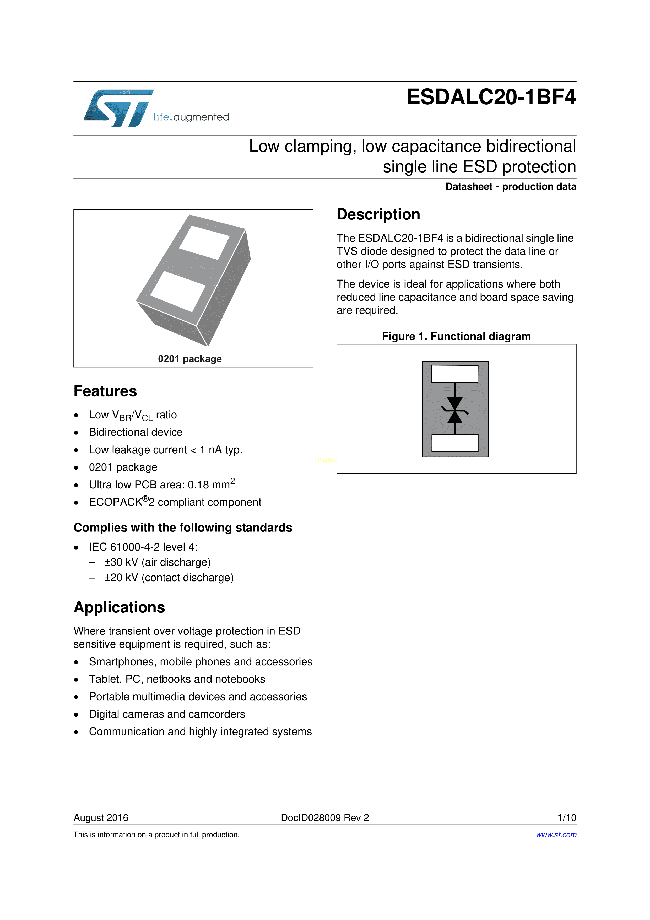 ESDALC20-1BF4数据手册0201封装ST(意法半导体)PDF规格书,中英文下载