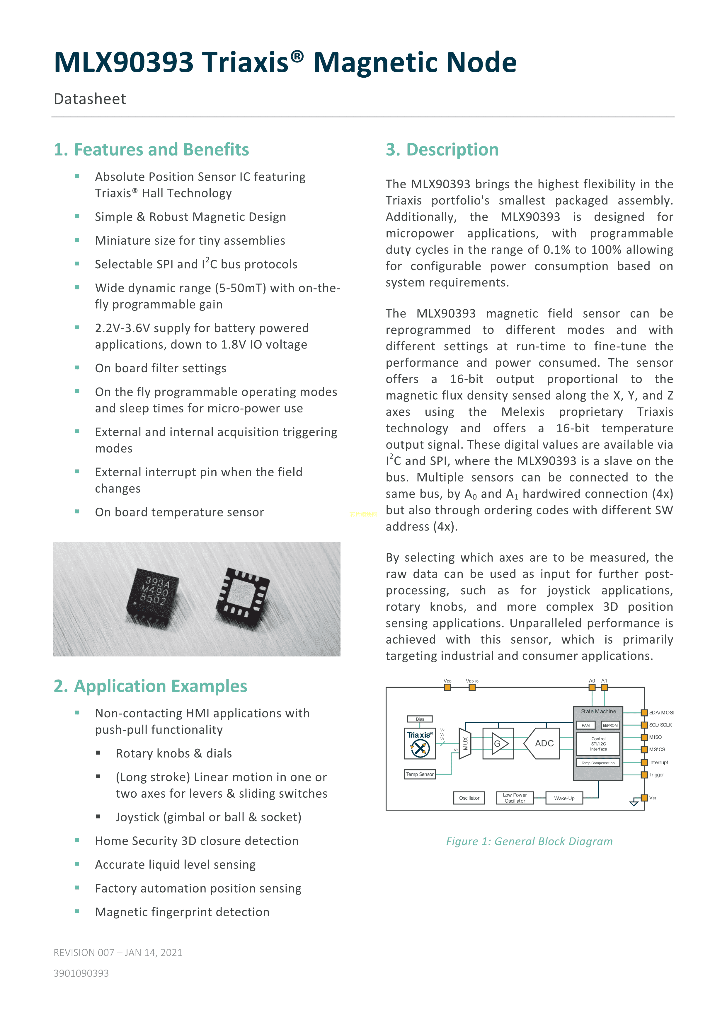 MLX90393SLW-ABA-013-SP数据手册QFN-16(3x3)封装Melexis(比利时迈来芯)PDF规格书,中英文下载