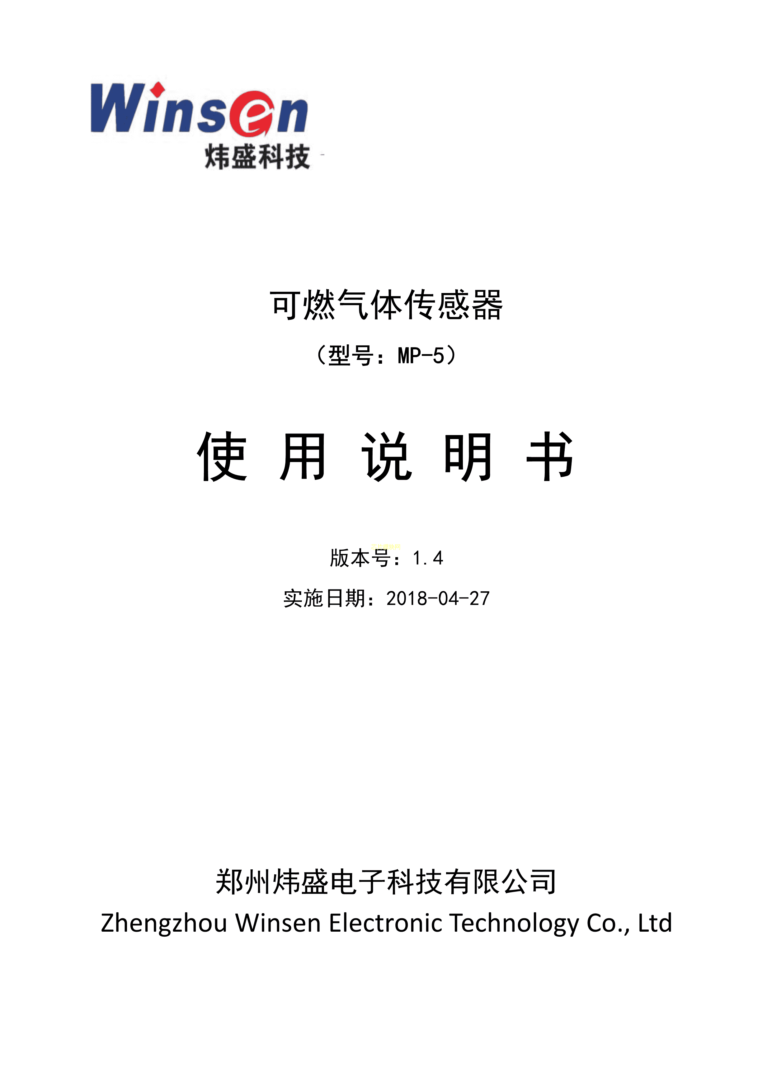 MP-5数据手册ThroughHole封装Winsen(炜盛)PDF规格书,中英文下载