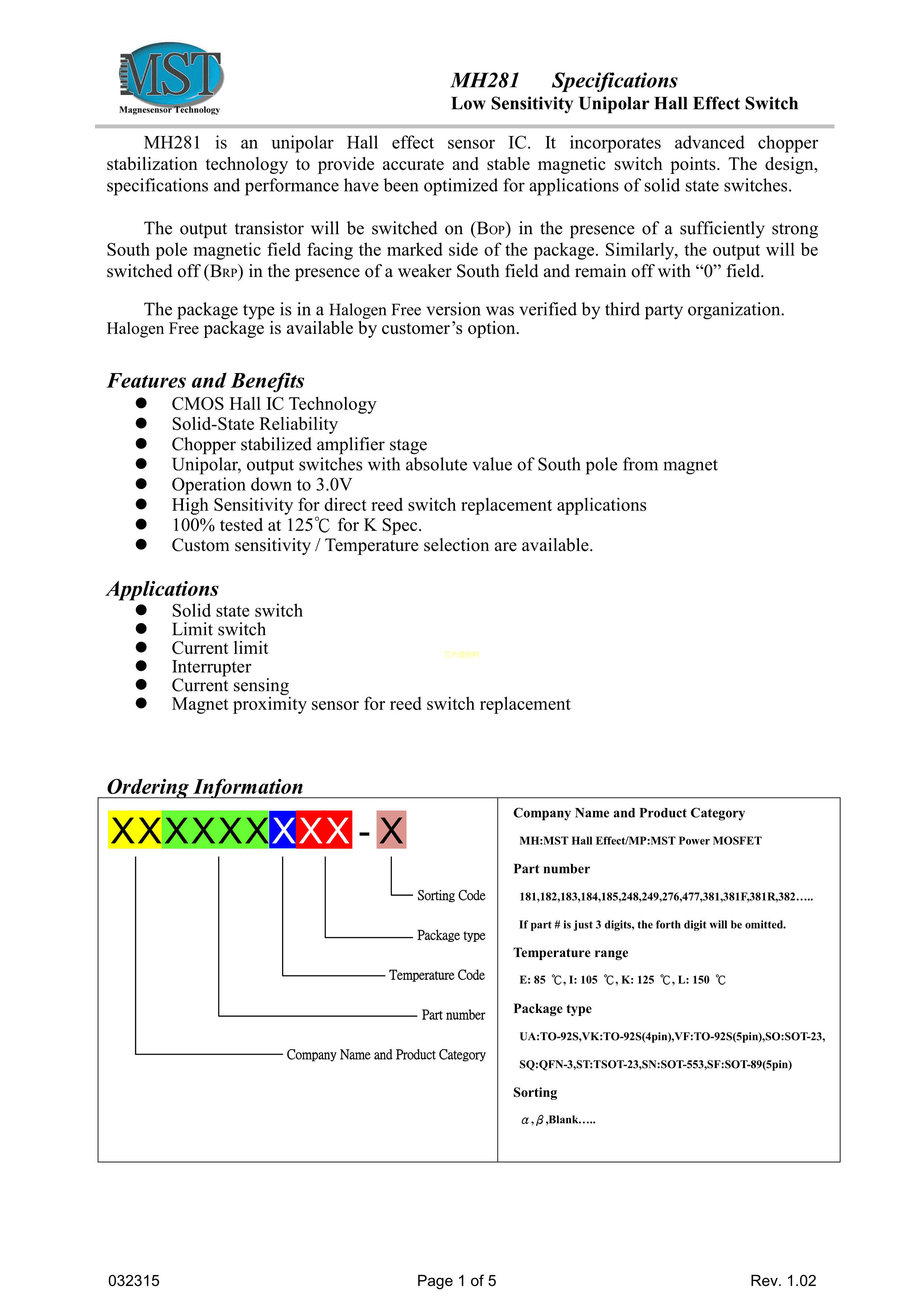 MH281KSO数据手册SOT-23-3L封装MST(台湾美伽)PDF规格书,中英文下载