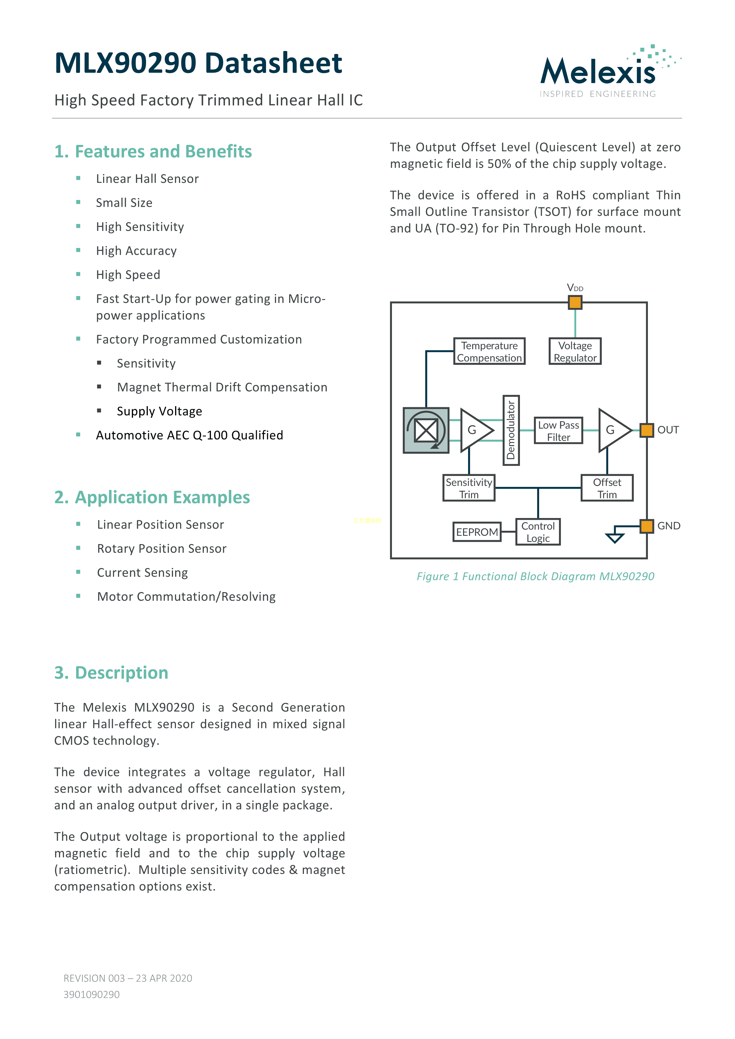 MLX90290LUA-AAA-540-BU数据手册TO-92-3封装Melexis(比利时迈来芯)PDF规格书,中英文下载