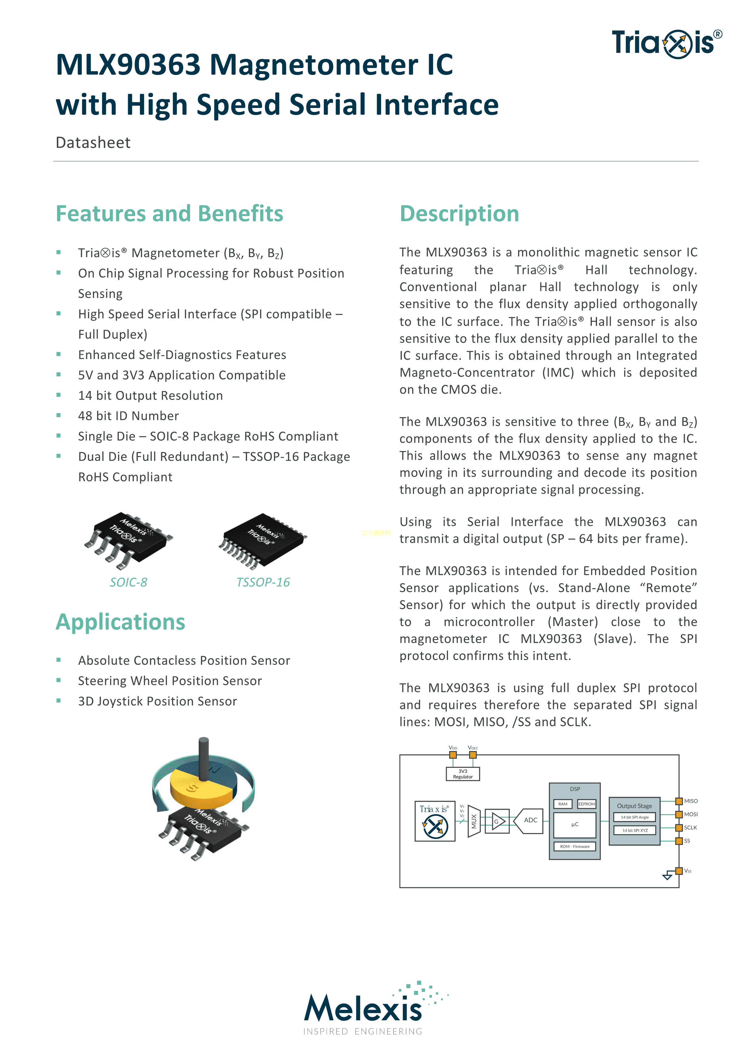 MLX90333KGO-BCT-000-RE数据手册TSSOP-16封装Melexis(比利时迈来芯)PDF规格书,中英文下载