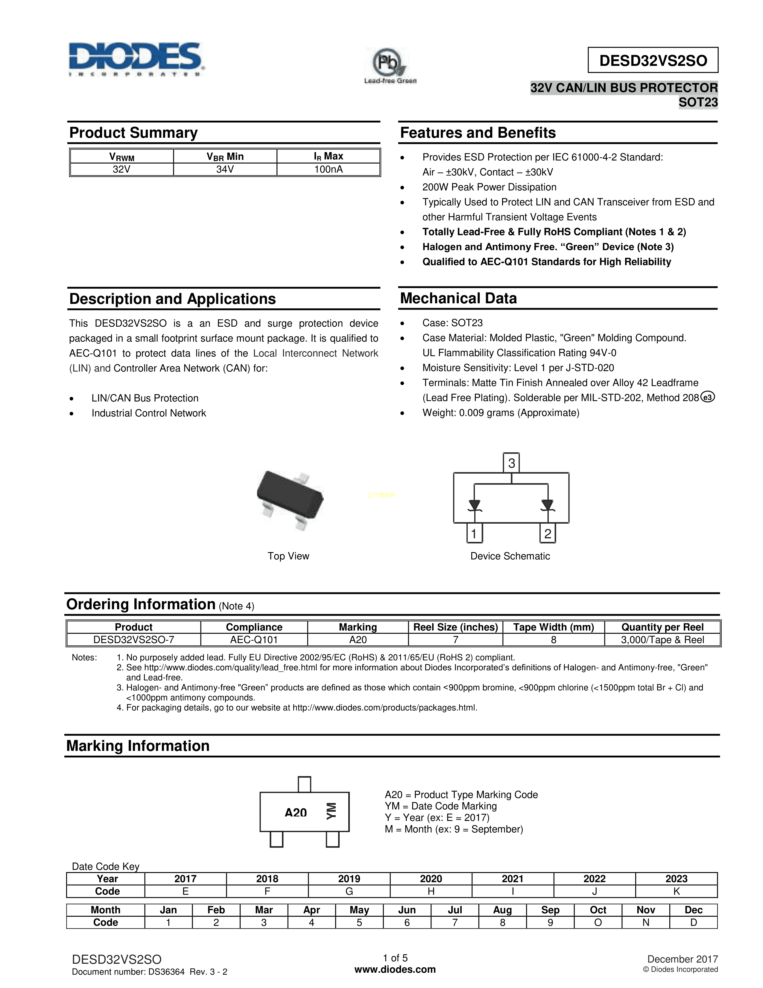 DESD32VS2SO-7数据手册SOT-23封装DIODES(美台)PDF规格书,中英文下载