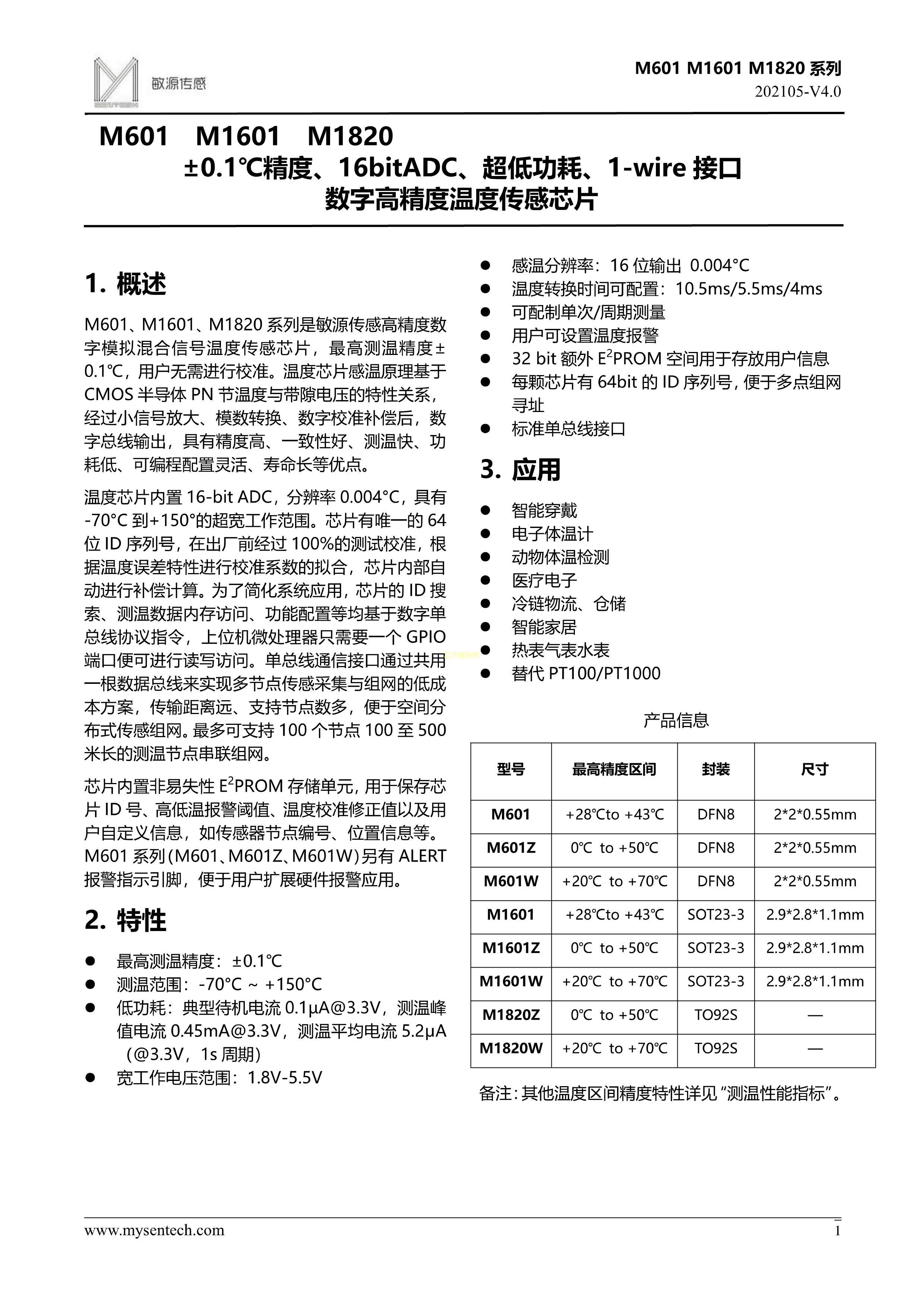 M1820W数据手册TO-92S封装Mysentech(敏源传感)PDF规格书,中英文下载