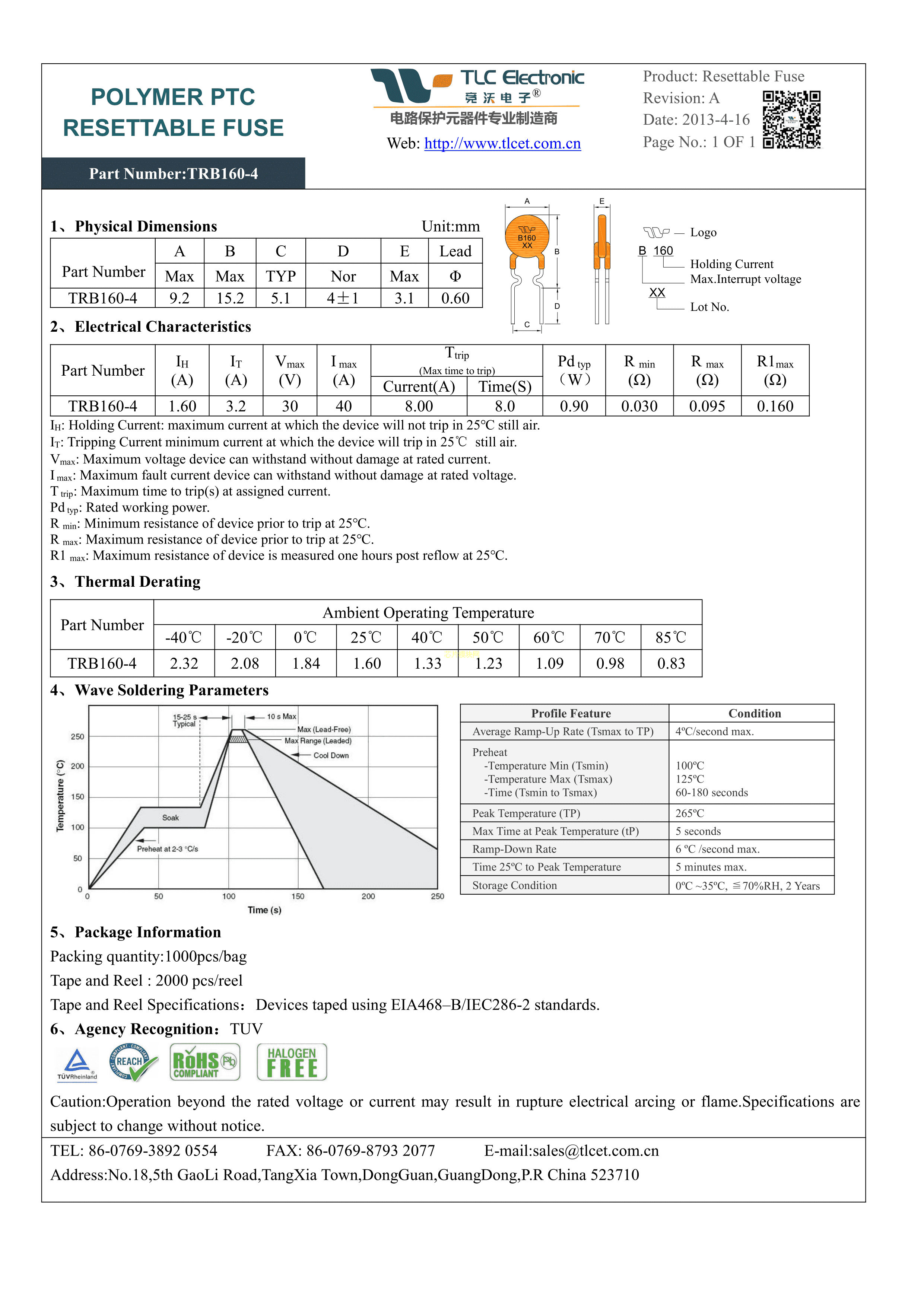 TRB160-4数据手册径向引线P5.1mmL4mm封装TLC(竞沃)PDF规格书,中英文下载