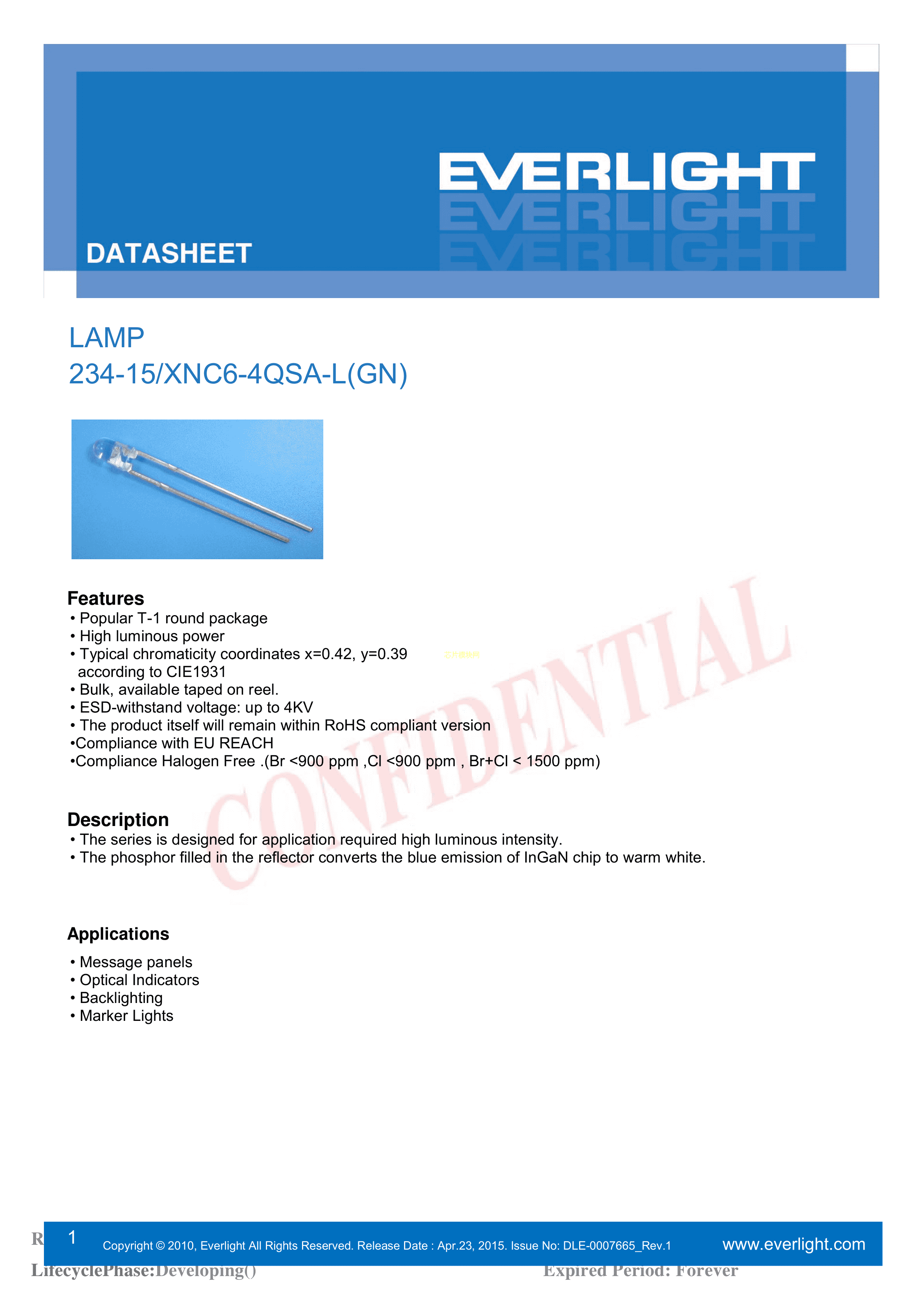 234-15-XNC6-4QSA-L数据手册插件φ3mm封装EVERLIGHT(台湾亿光)PDF规格书,中英文下载