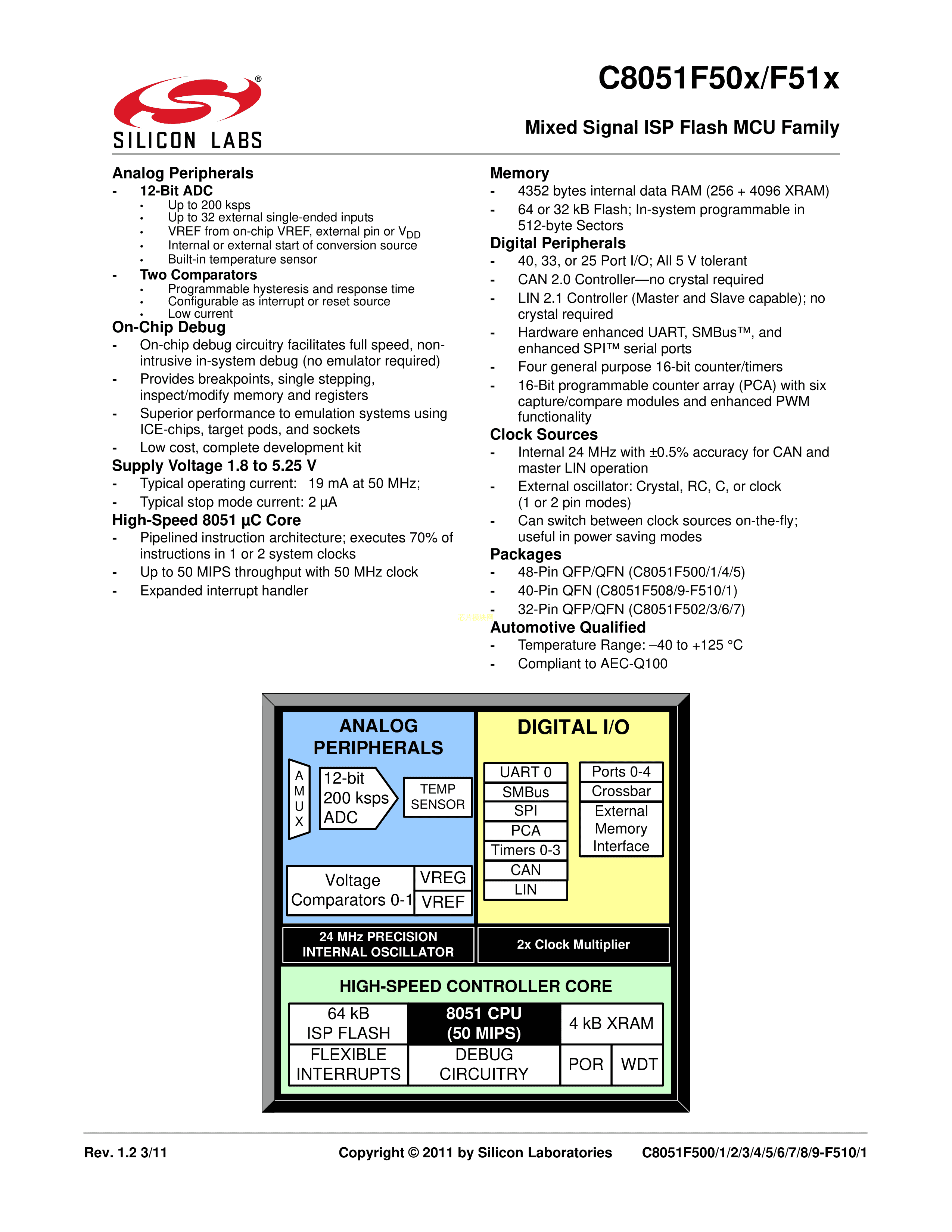 C8051F500-IQR数据手册QFP-48封装SILICONLABS(芯科)PDF规格书,中英文下载