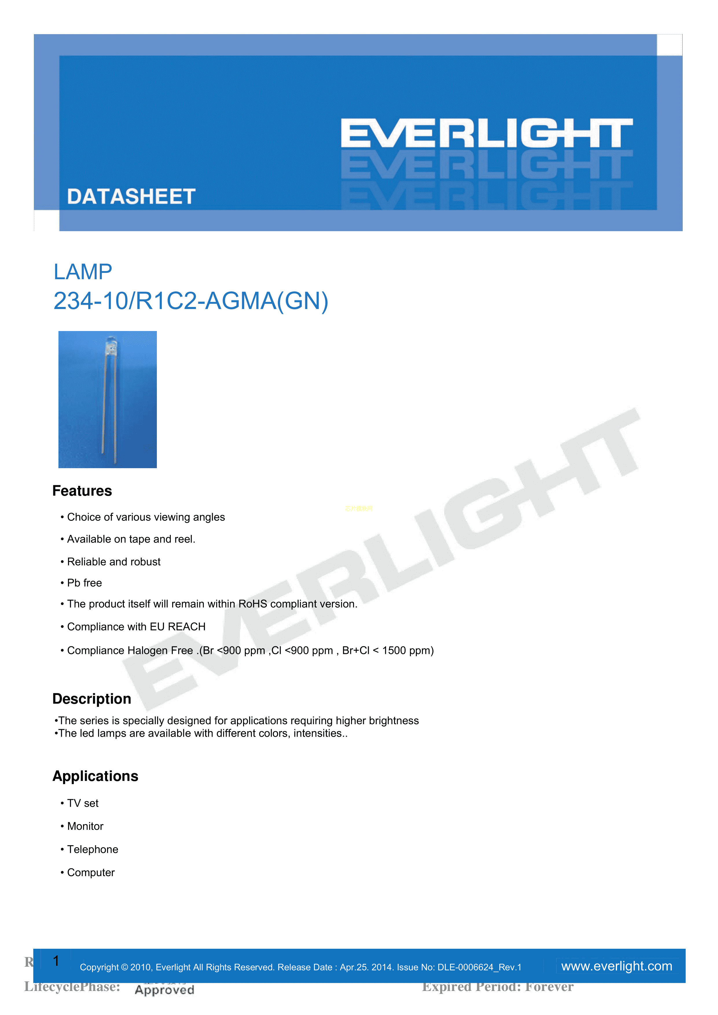 234-10-R1C2-AGMA数据手册插件φ3mm封装EVERLIGHT(台湾亿光)PDF规格书,中英文下载