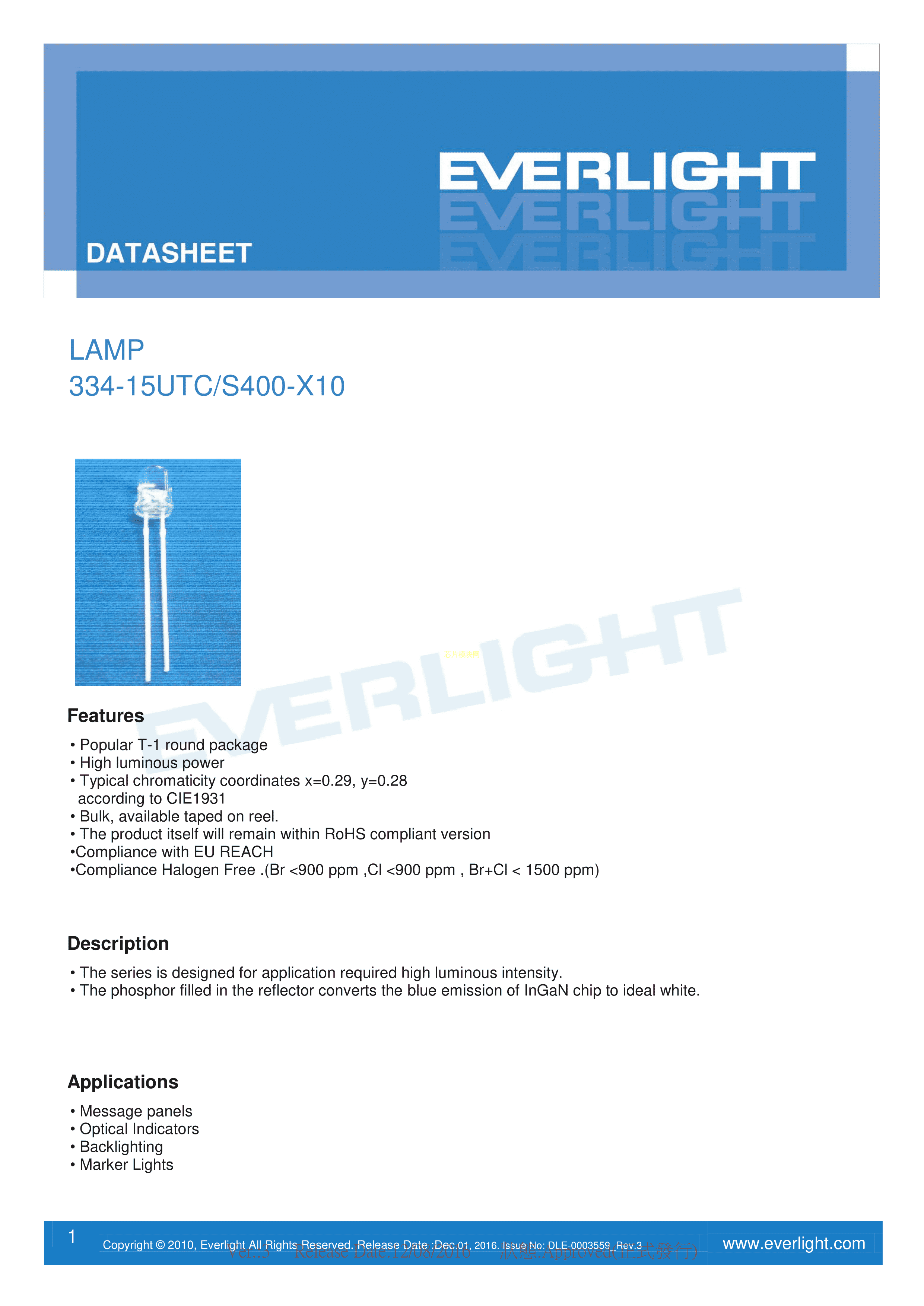 334-15UTC-S400-X10数据手册插件φ5mm封装EVERLIGHT(台湾亿光)PDF规格书,中英文下载