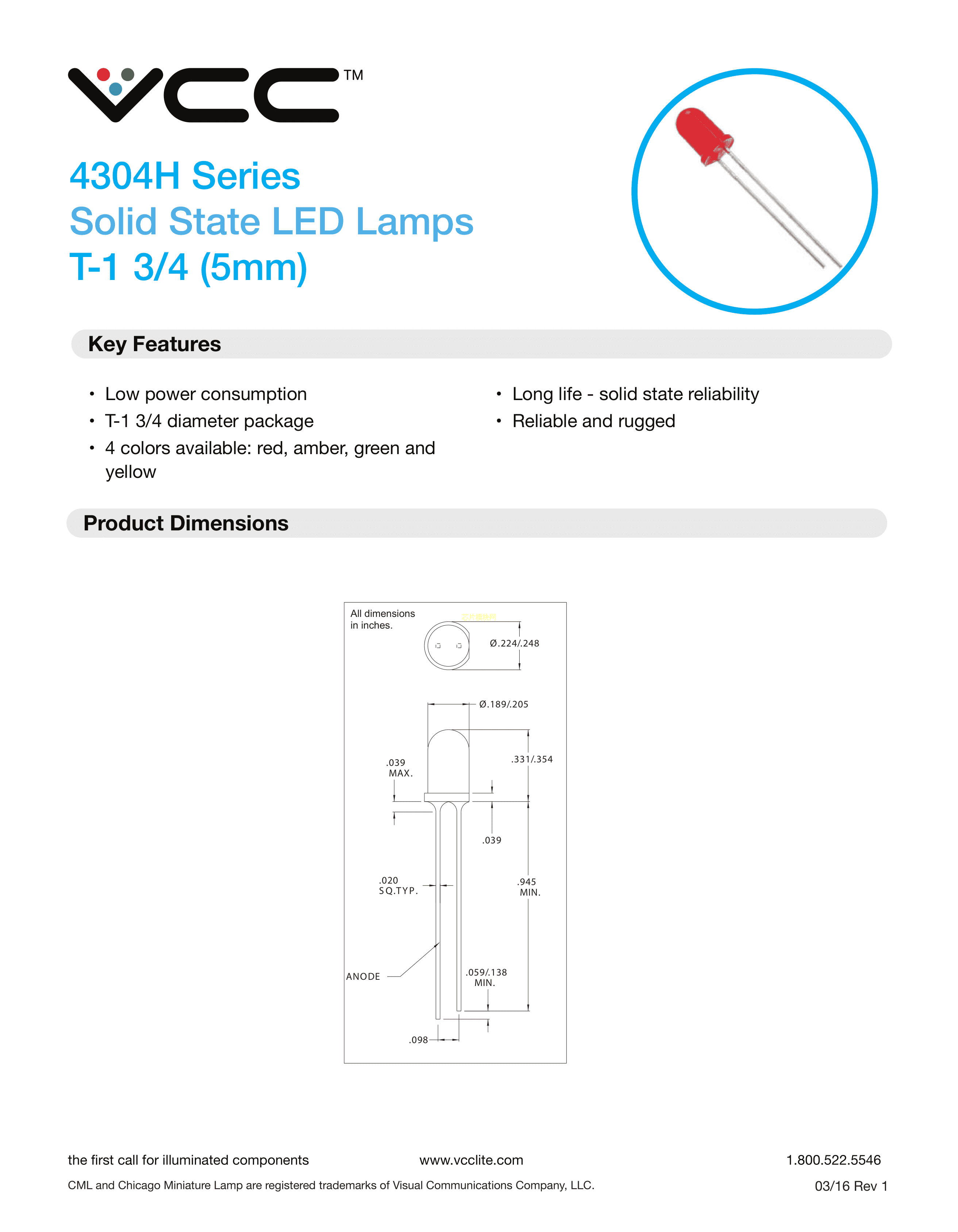 4304H5数据手册插件φ5mm封装VCCPDF规格书,中英文下载