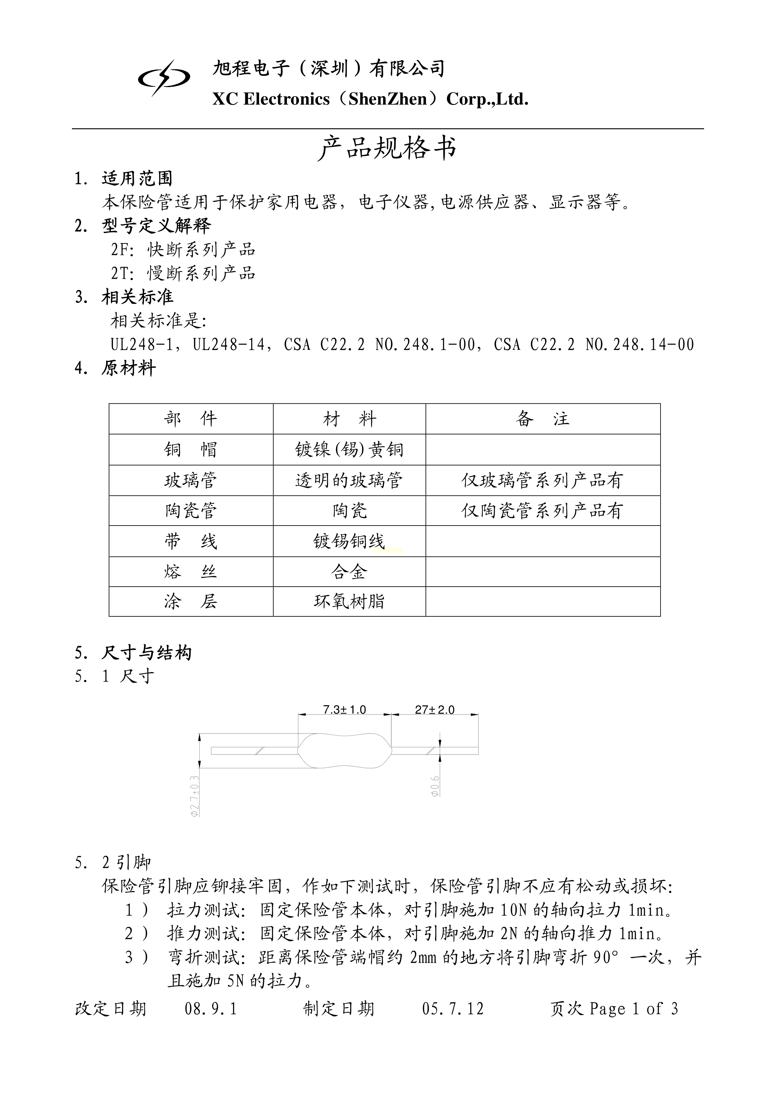 2F.6300212000ZHGMB02数据手册轴向引线封装xcfuse(旭程)PDF规格书,中英文