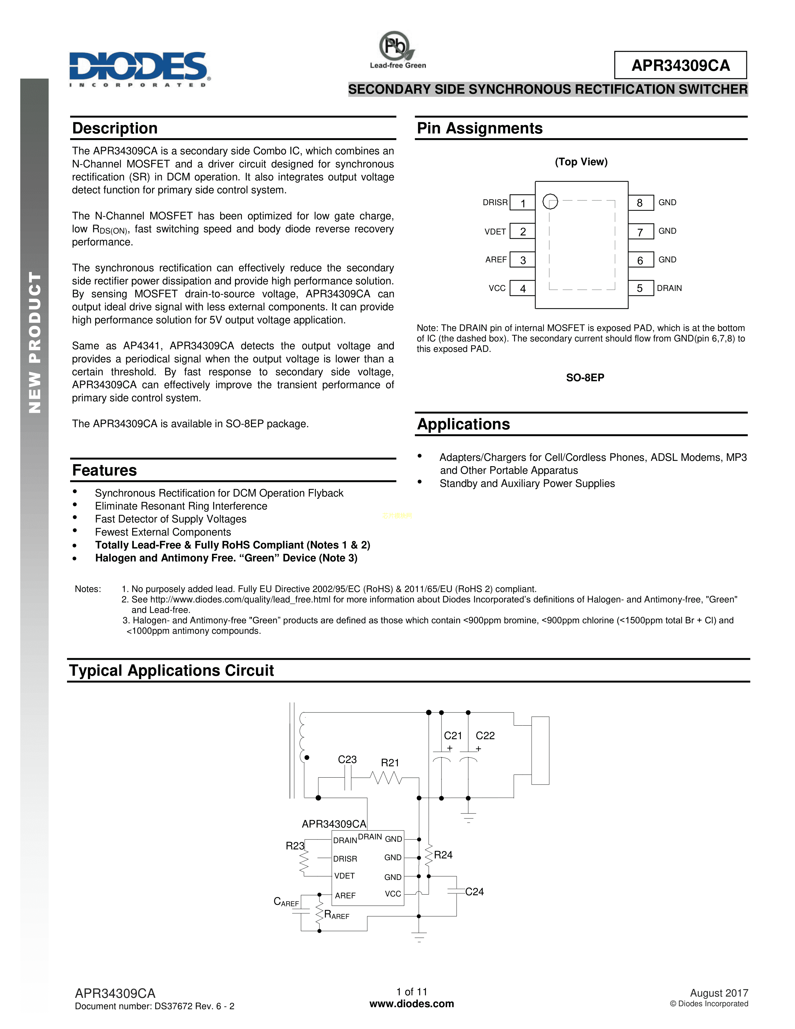 APR34309CMPTR-G1数据手册SO-8EP封装DIODES(美台)PDF规格书,中英文下载