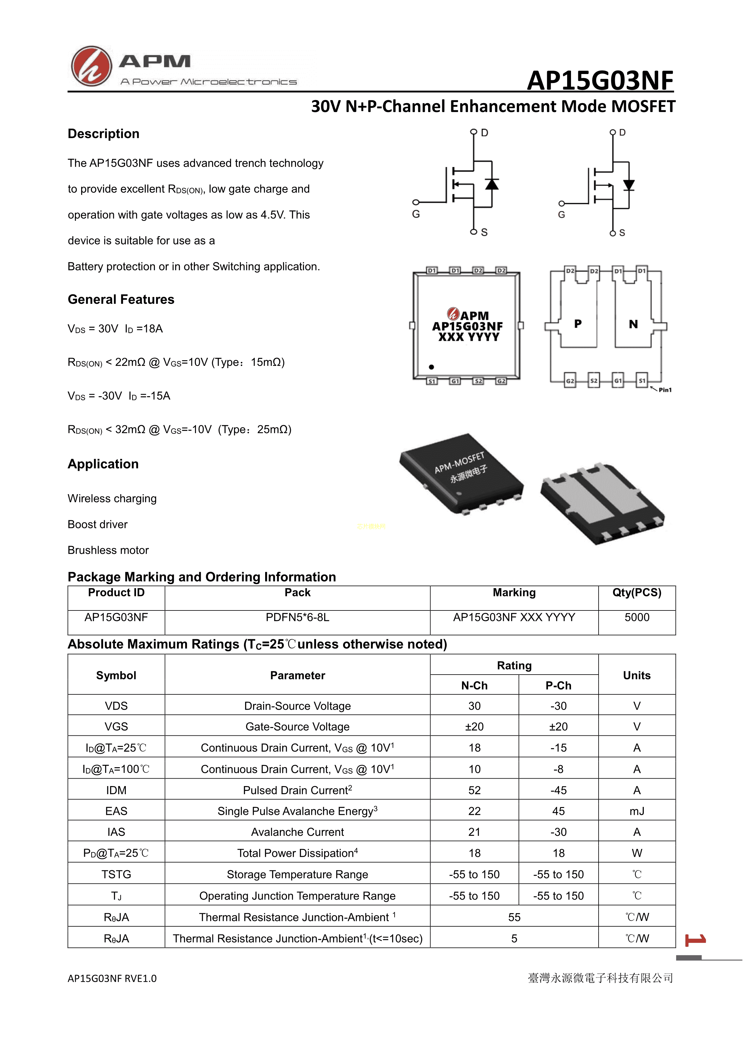 AP15G03NF数据手册PDFN5x6-8L封装APM(永源微电子)PDF规格书,中英文下载