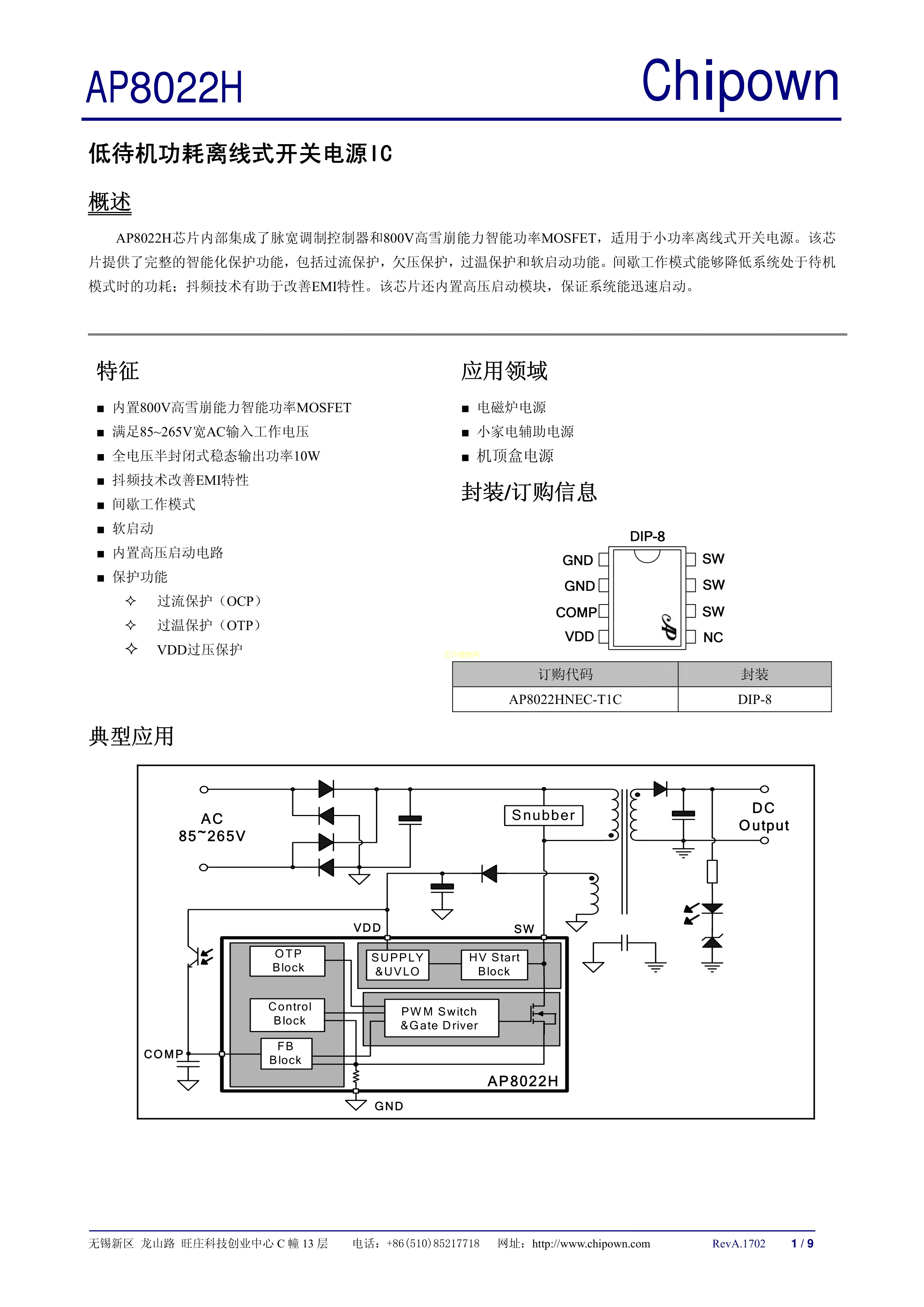 AP8022HNEC-T1C数据手册DIP-8封装chipown(芯朋微电子)PDF规格书,中英文下
