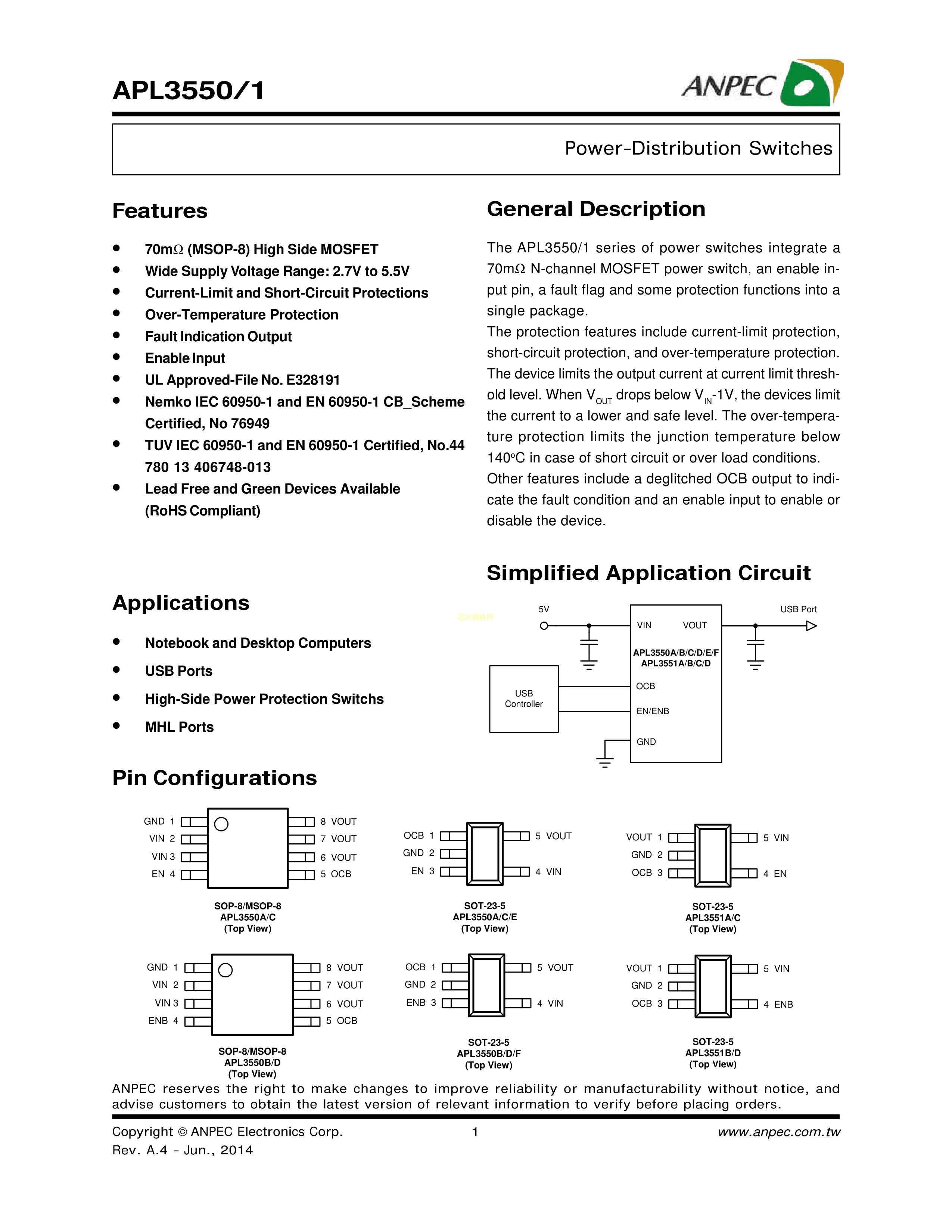 APL3551CBI-TRG数据手册SOT-23-5封装ANPEC(茂达电子)PDF规格书,中英文下
