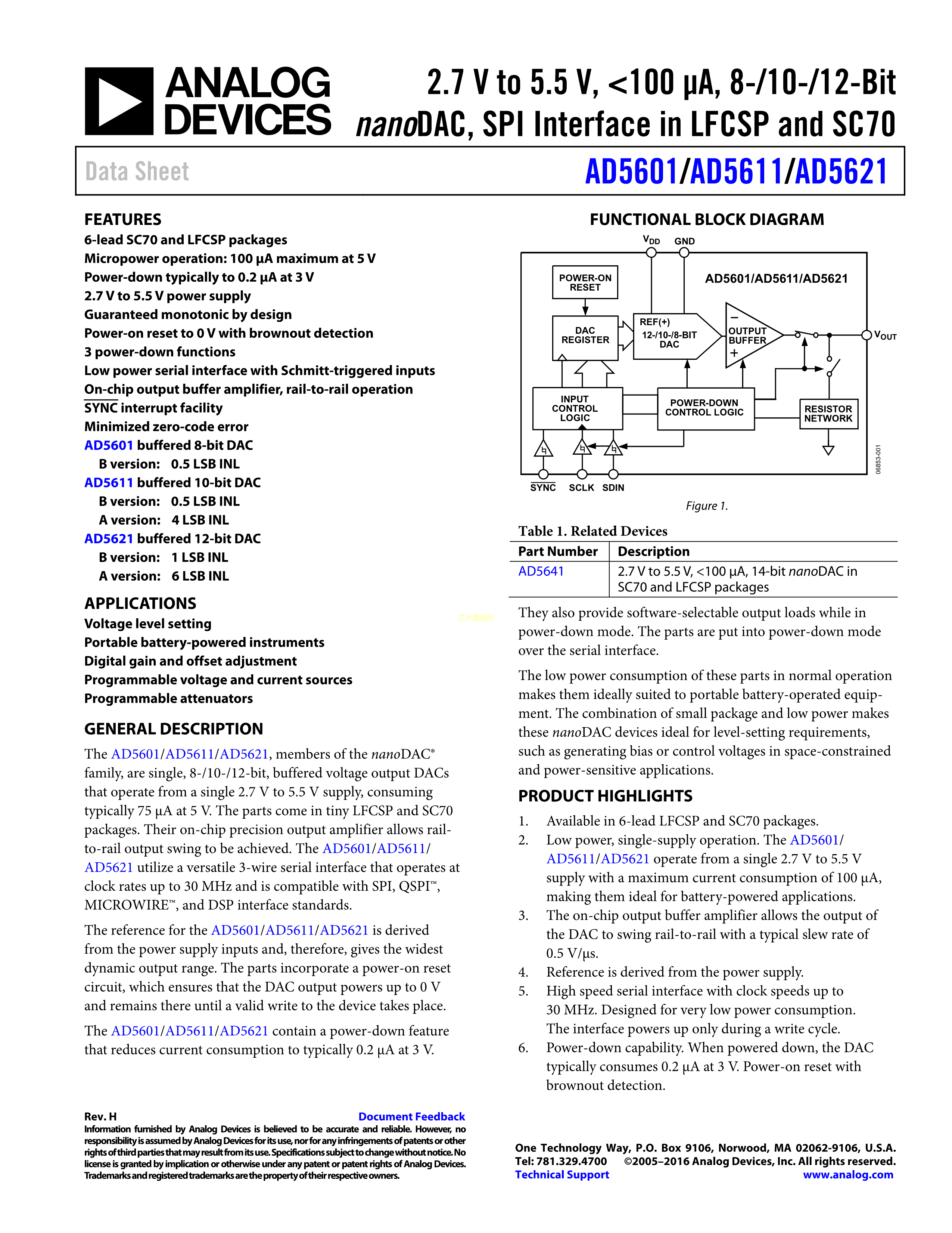 AD5621BKSZ-REEL7数据手册SC-70-6(SOT-363)封装ADI(亚德诺)-LIN