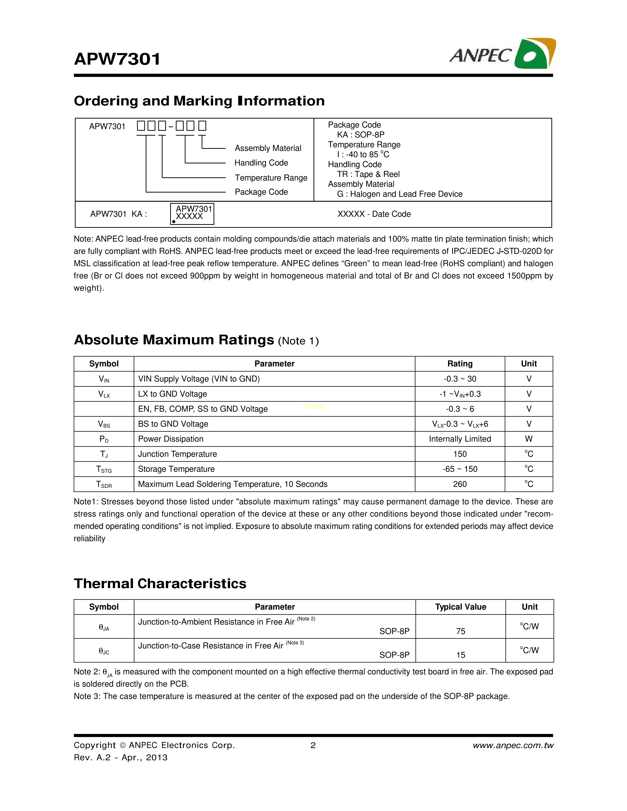 APW7301KAI-TRG数据手册SOP-8EP_150mil封装ANPEC(茂达电子)PDF规格