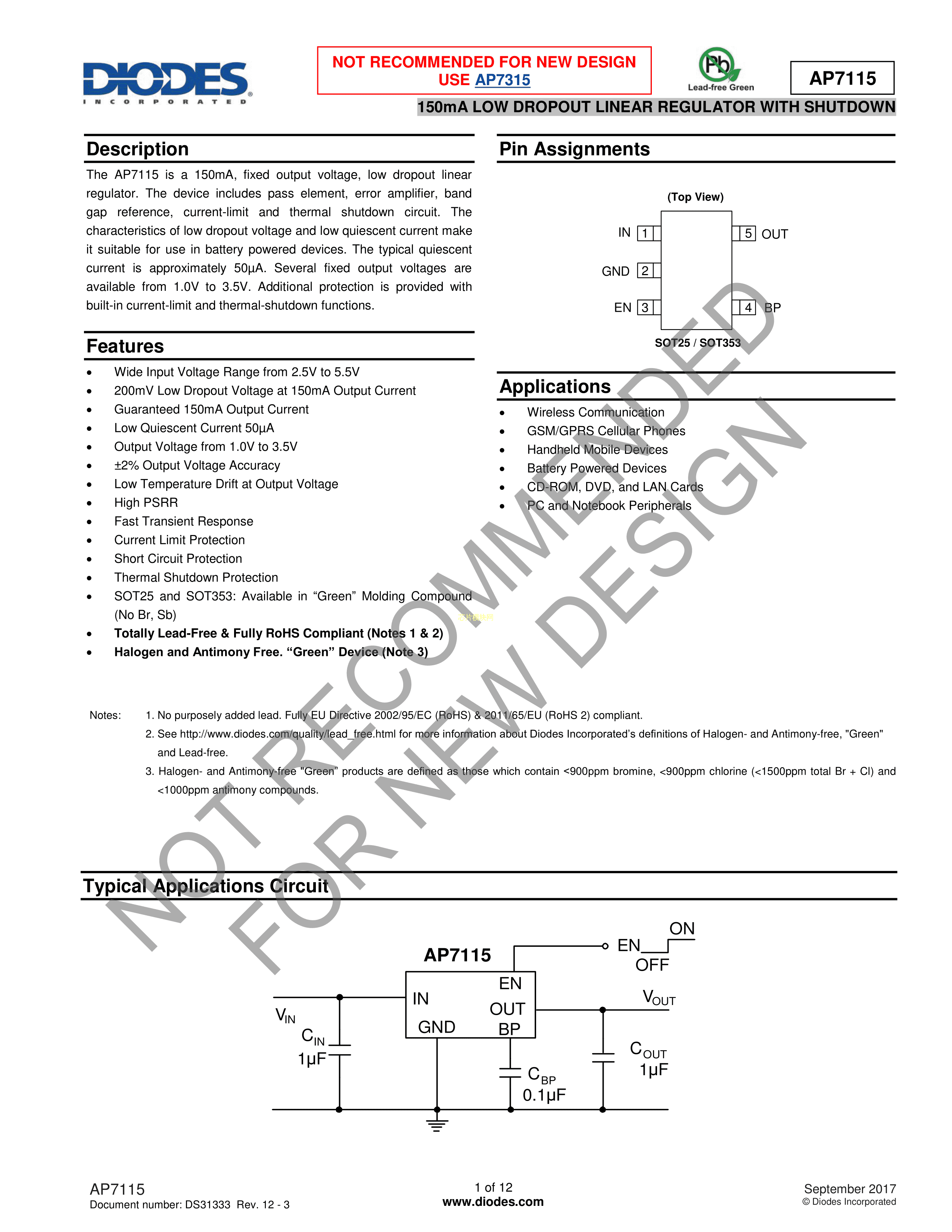 AP7115-12WG-7数据手册SOT-25封装DIODES(美台)PDF规格书,中英文下载