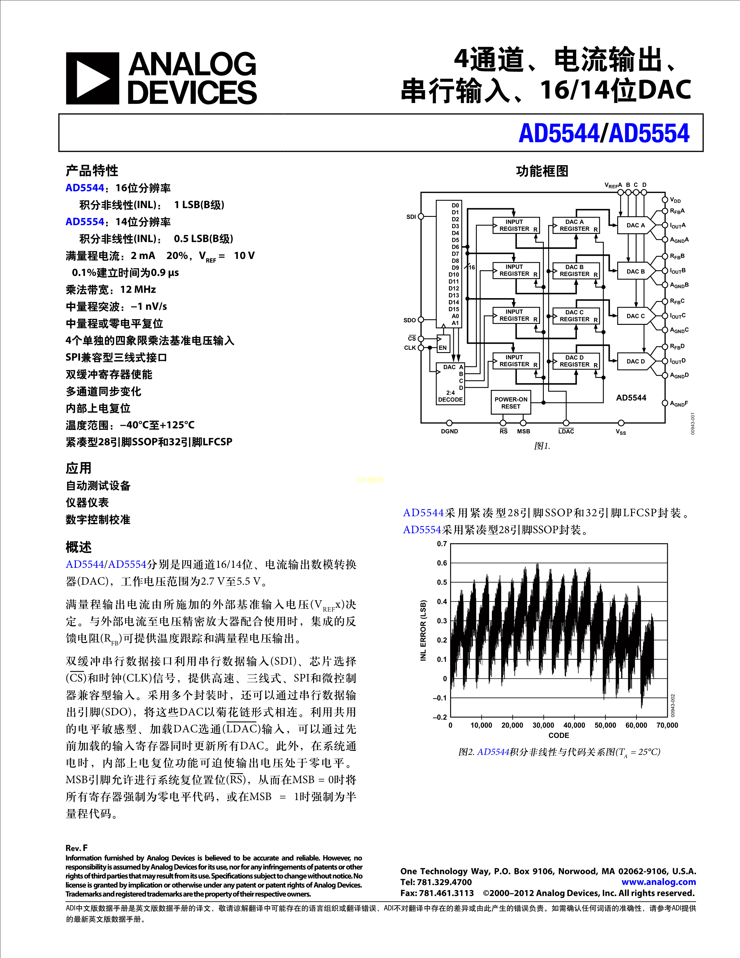 AD5544BRSZ数据手册SSOP-28封装ADI(亚德诺)-LINEARPDF规格书,中英文下载