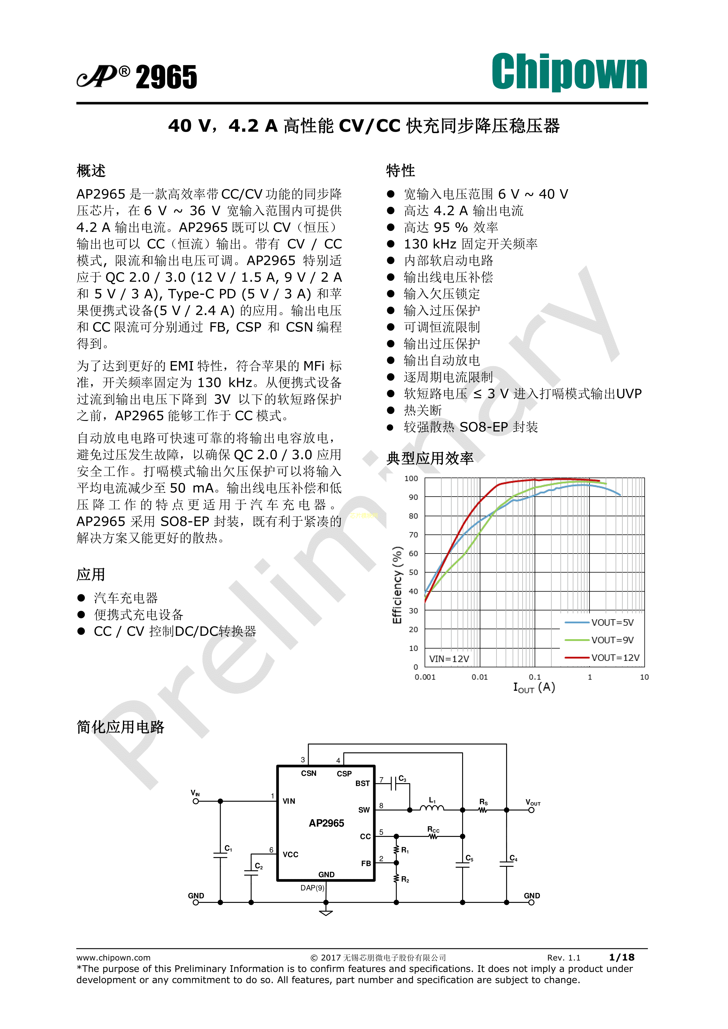 AP2965SPER数据手册SO-8EP封装chipown(芯朋微电子)PDF规格书,中英文下载