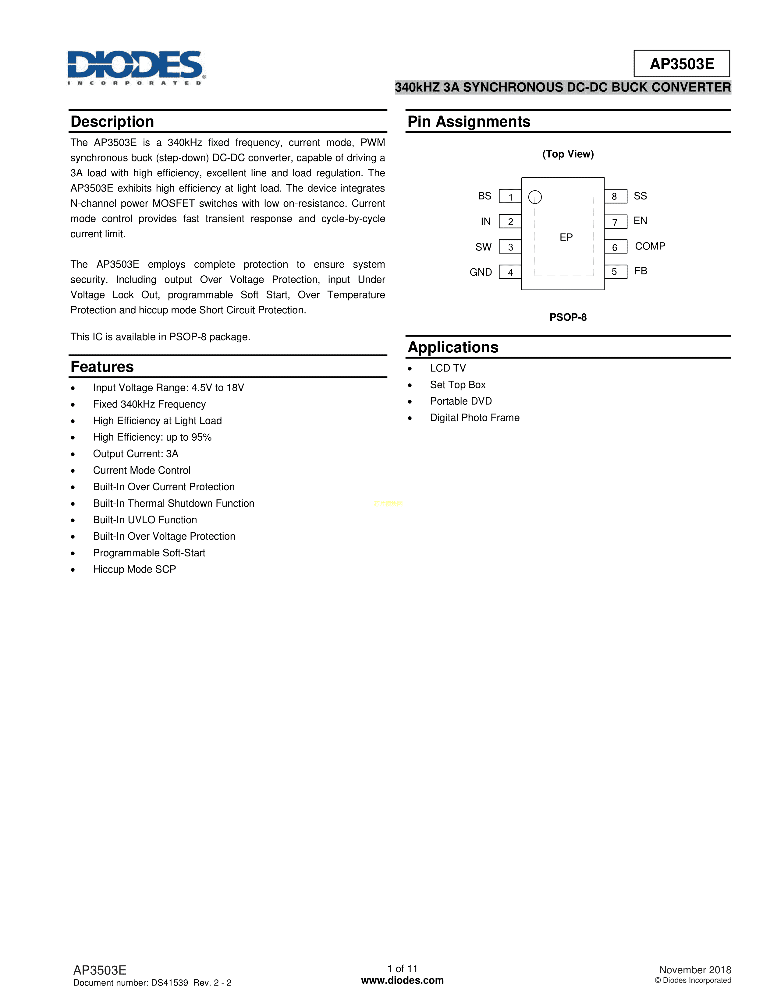 AP3503EMPTR-G1数据手册PSOP-8封装DIODES(美台)PDF规格书,中英文下载