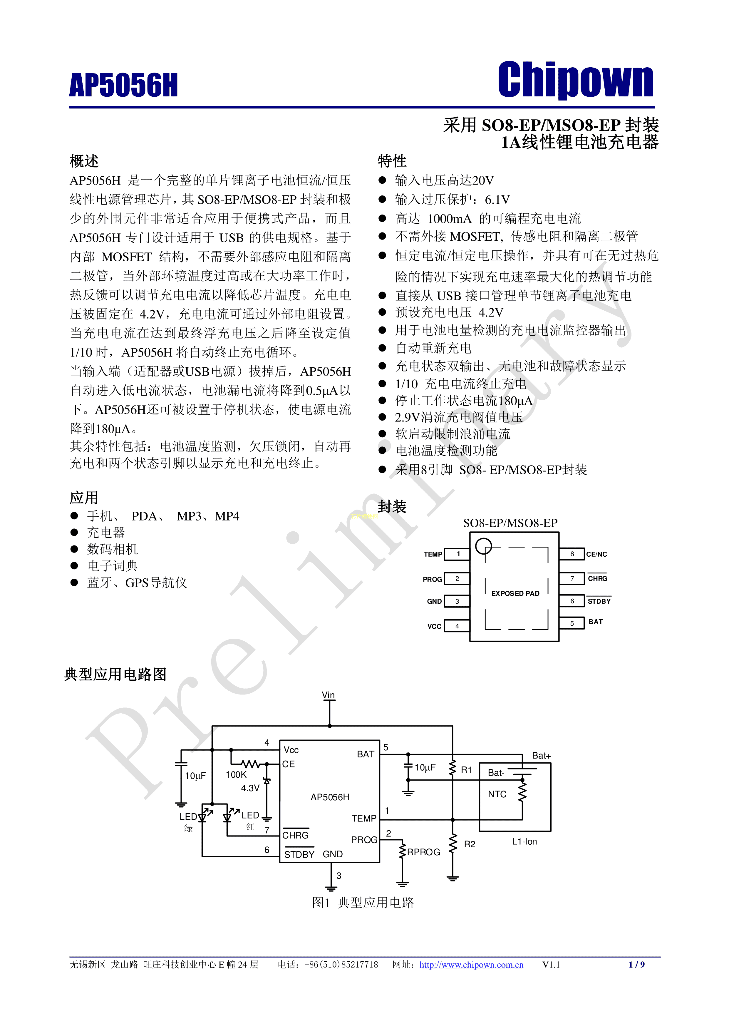 AP5056HSPER数据手册SOP-8封装chipown(芯朋微电子)PDF规格书,中英文下载