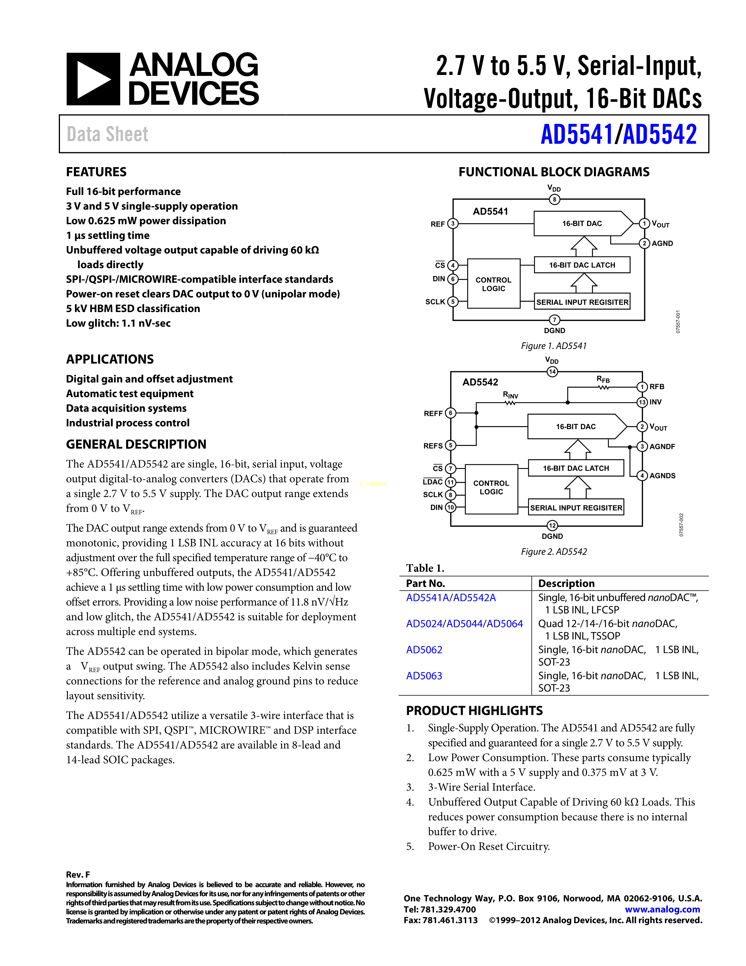 AD5541LRZ数据手册SOIC-8封装ADI(亚德诺)-LINEARPDF规格书,中英文下载