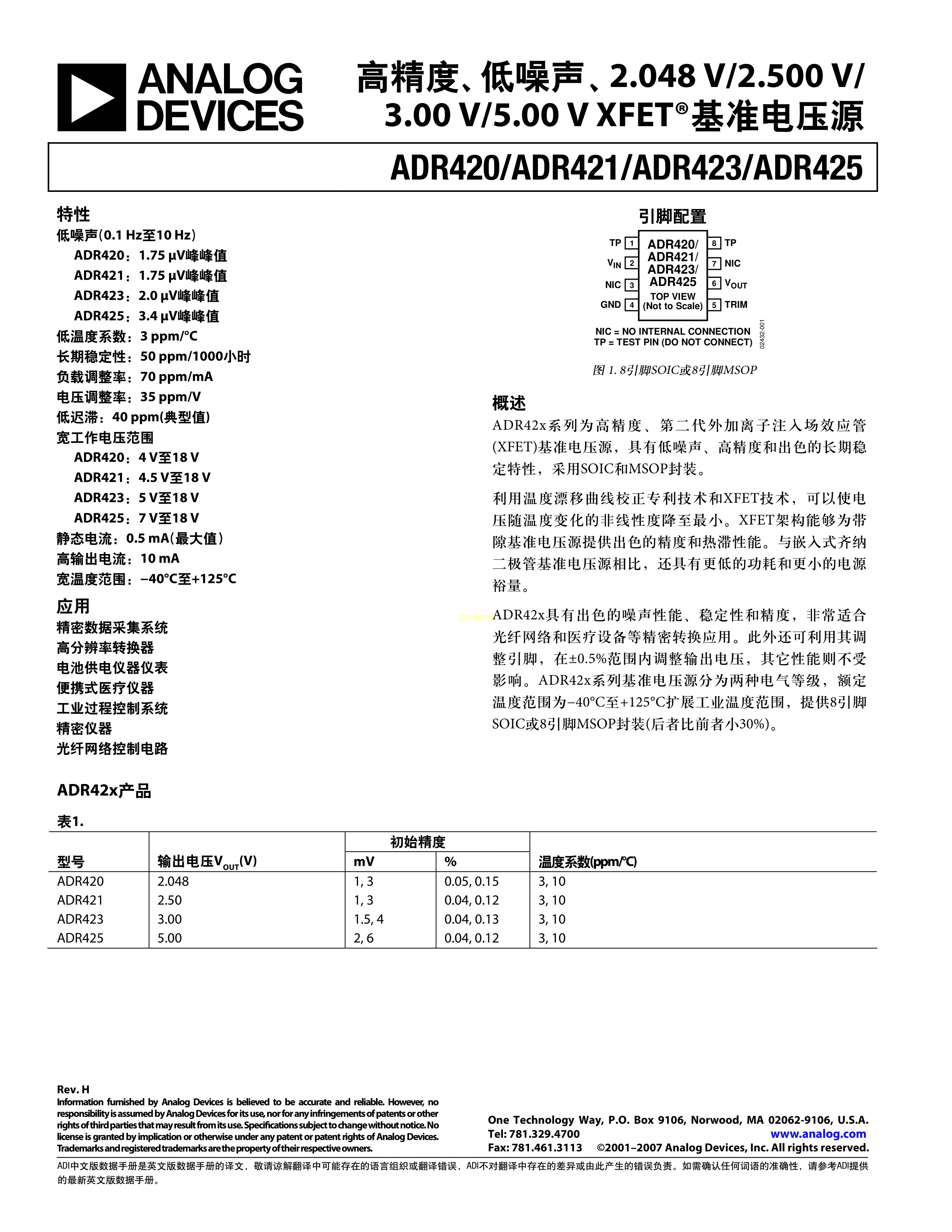 ADR421BRZ数据手册SOIC-8封装ADI(亚德诺)-LINEARPDF规格书,中英文下载