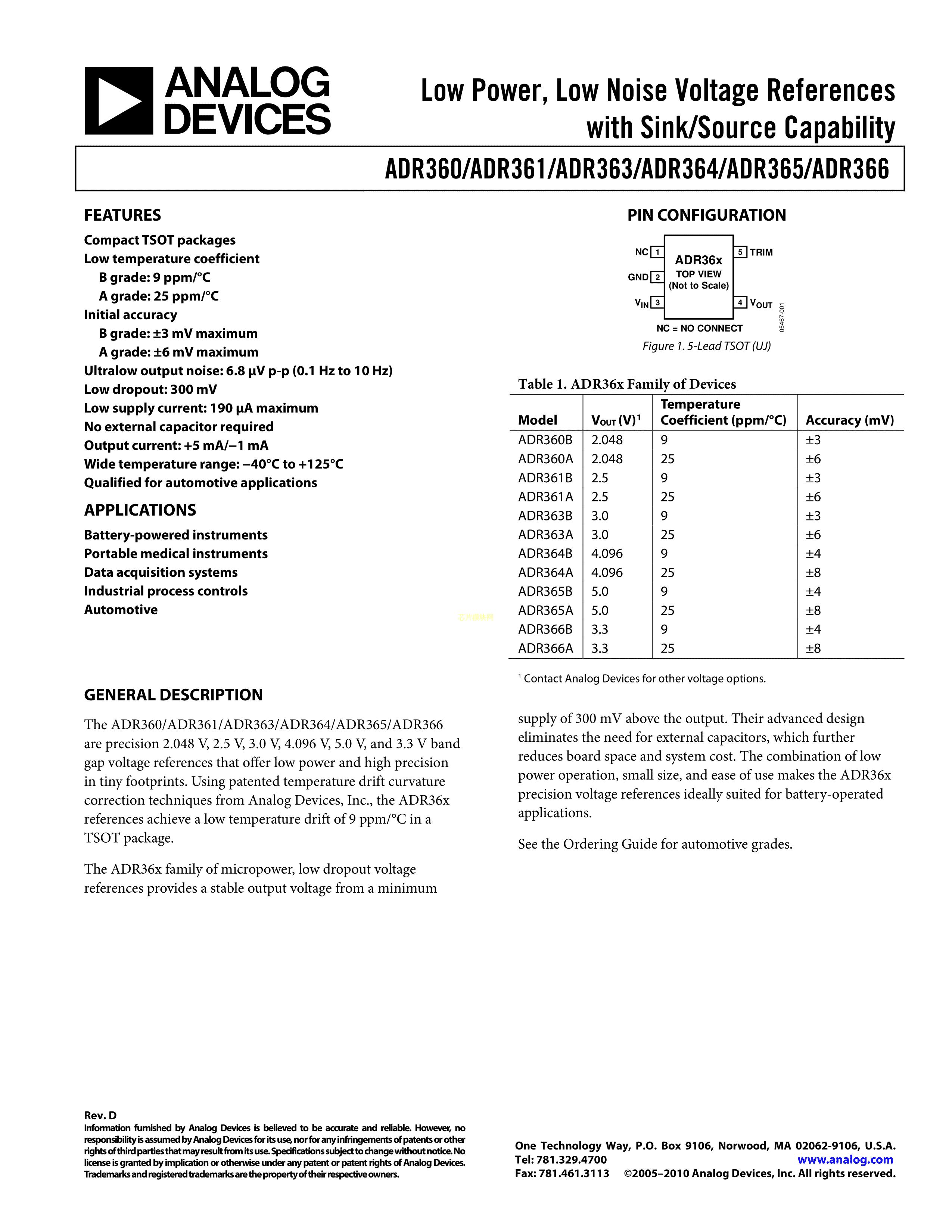ADR361AUJZ-REEL7数据手册TSOT-23-5封装ADI(亚德诺)-LINEARPDF规