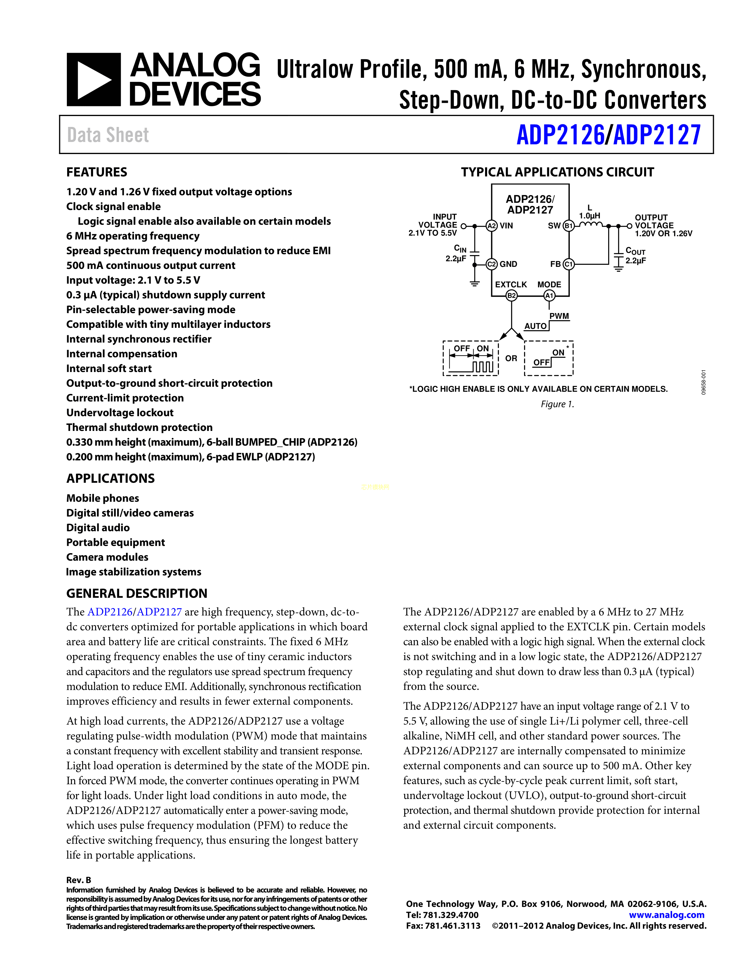 ADP2127ACNZ-1.20R7数据手册EWLP-6封装ADI(亚德诺)-LINEARPDF规格