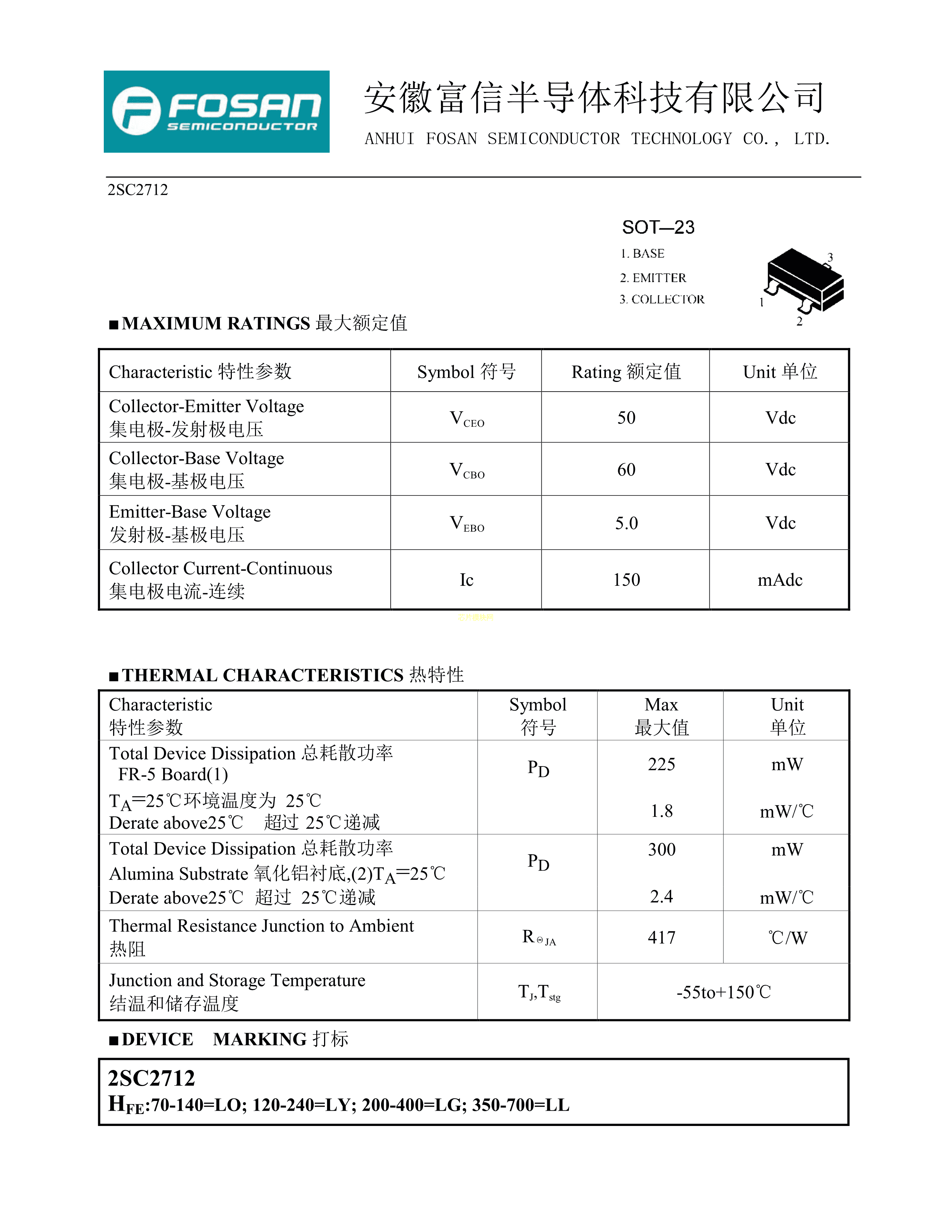 2SC2712LY数据手册SOT-23封装FOSAN(富信)PDF规格书,中英文下载