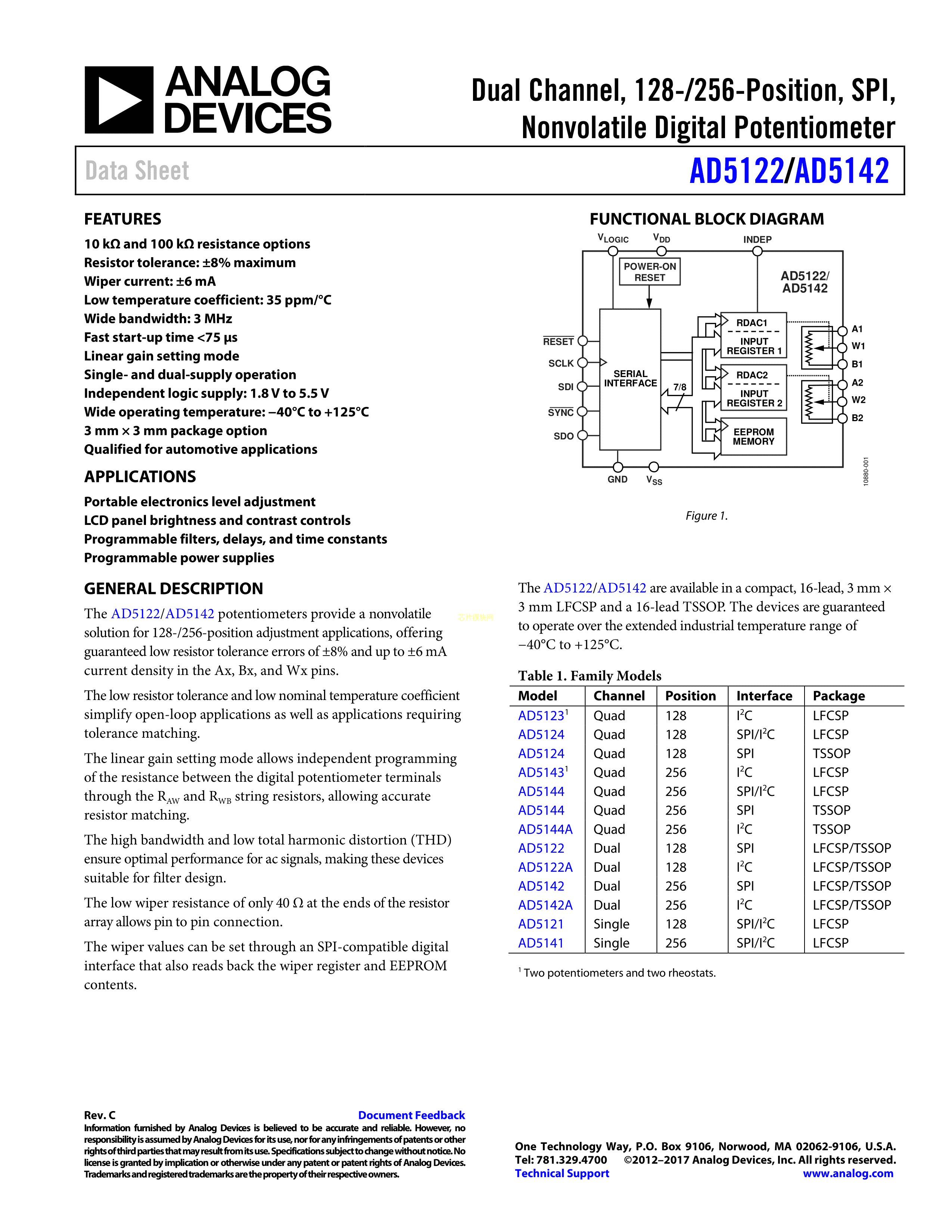 AD5141WBCPZ10-RL7数据手册LFCSP-16封装ADI(亚德诺)-LINEARPDF规