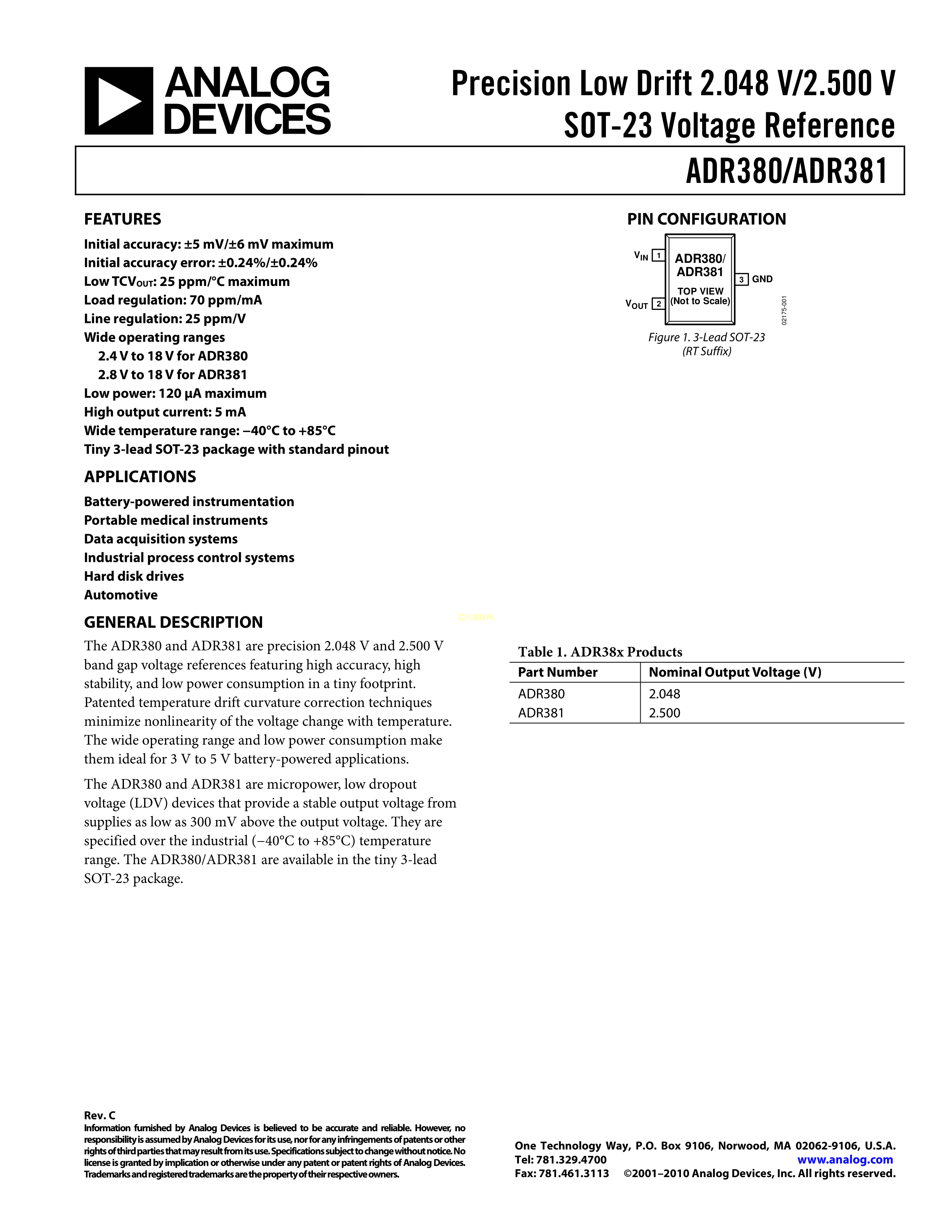 ADR380ARTZ-REEL7数据手册SOT-23-3封装ADI(亚德诺)-LINEARPDF规格