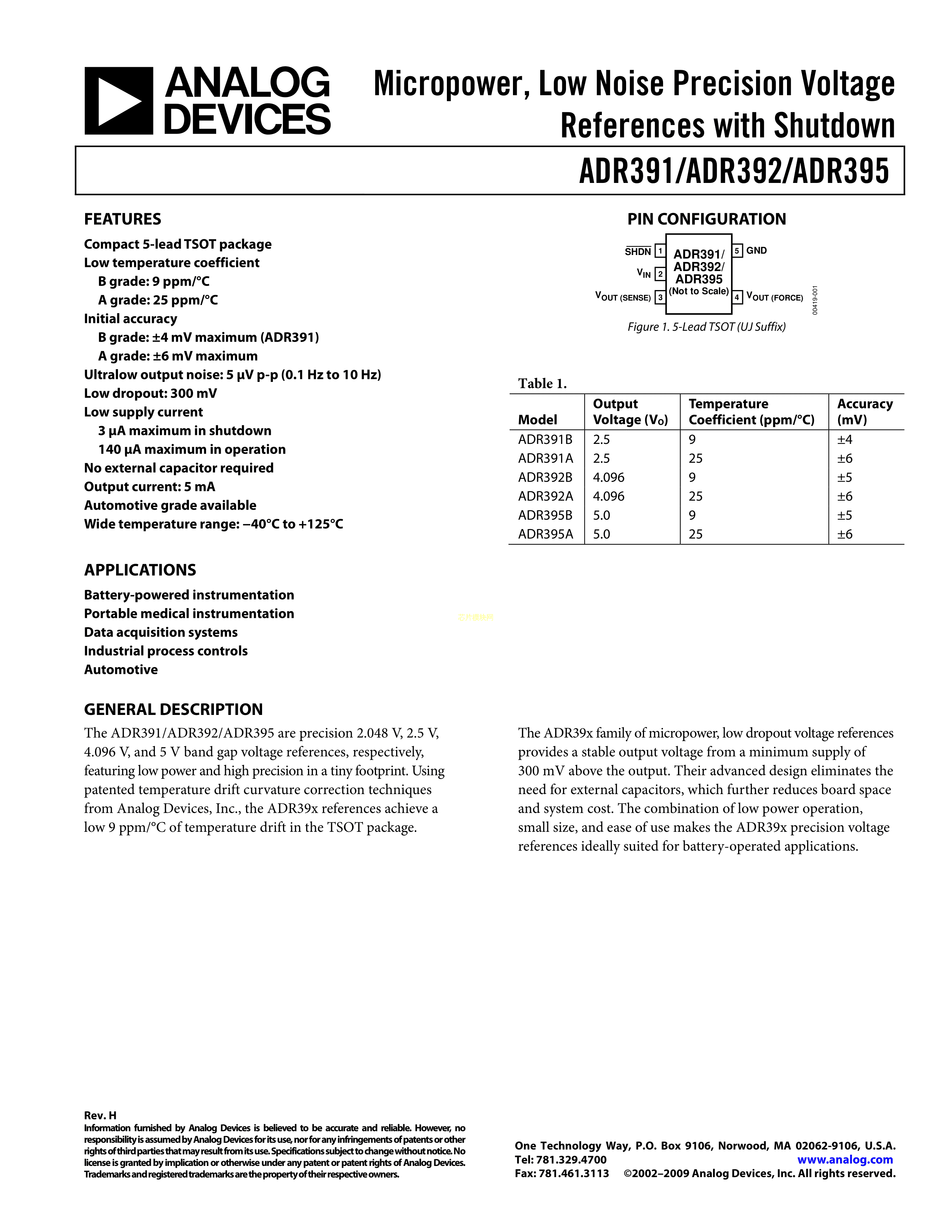 ADR391AUJZ-REEL7数据手册TSOT-23-5封装ADI(亚德诺)-LINEARPDF规