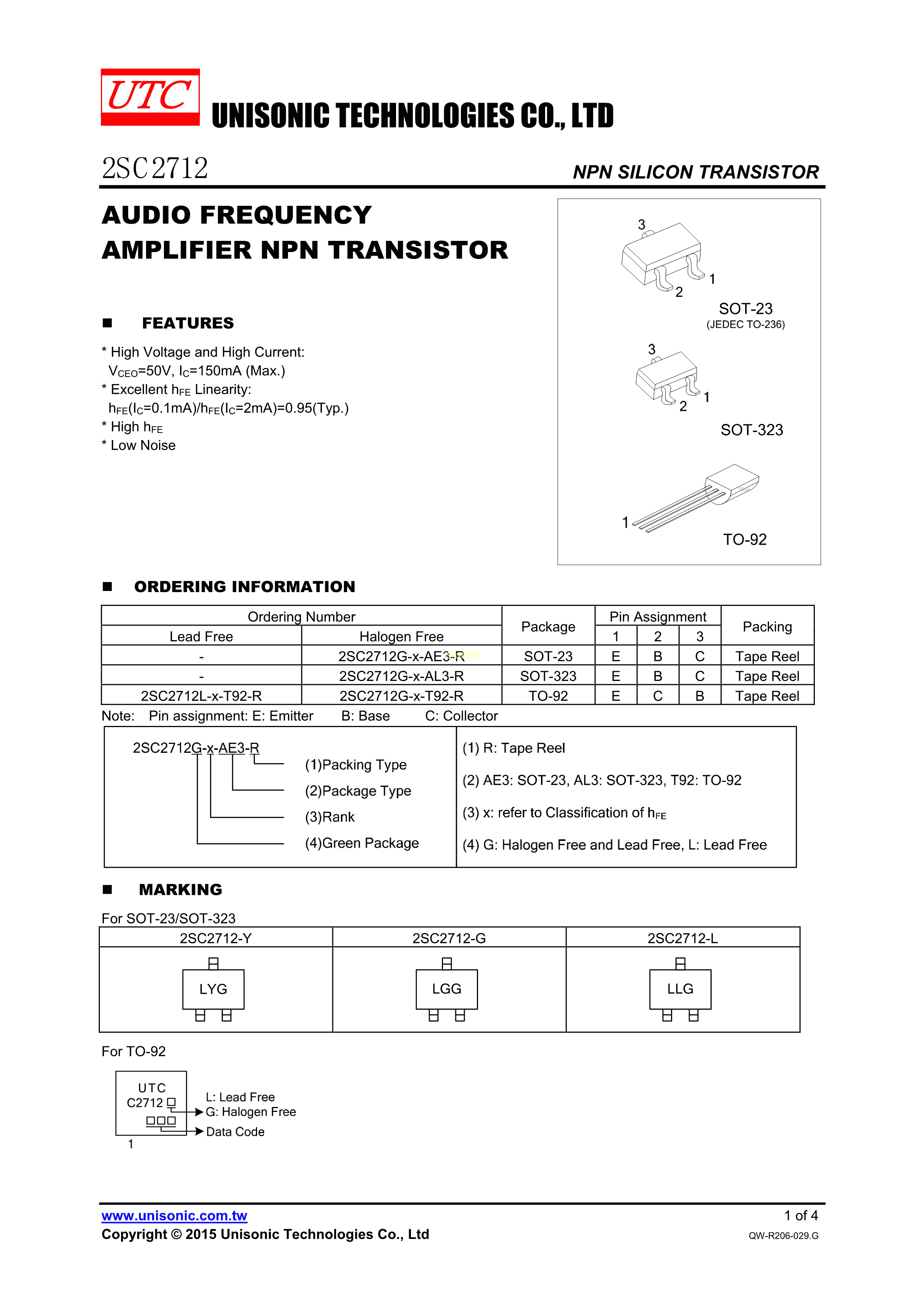 2SC2712G-G-AE3-R数据手册SOT-23(SOT-23-3)封装UTC(友顺)PDF规格