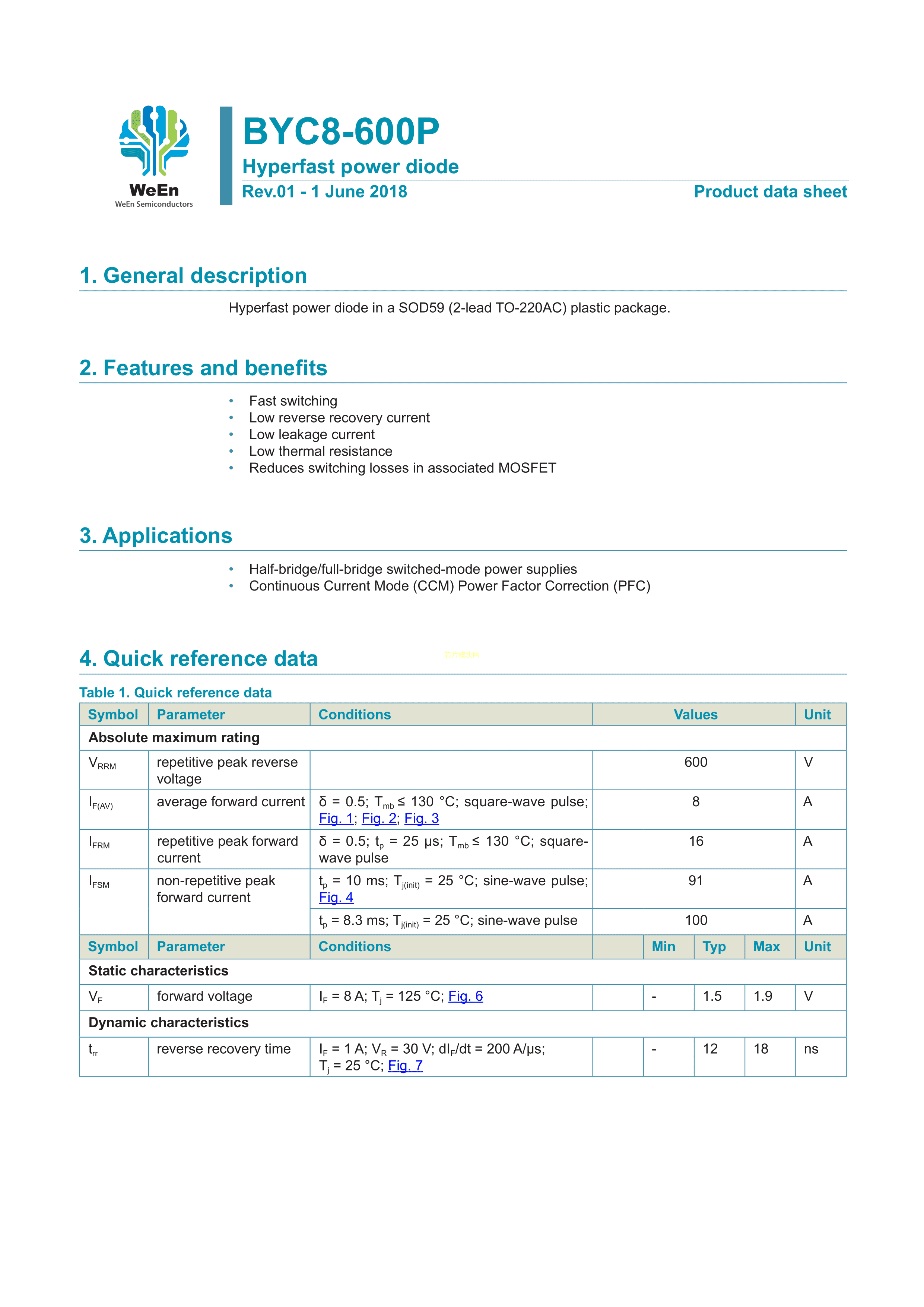 BYC5-600127数据手册SOD-59封装WeEn(瑞能)PDF规格书,中英文下载