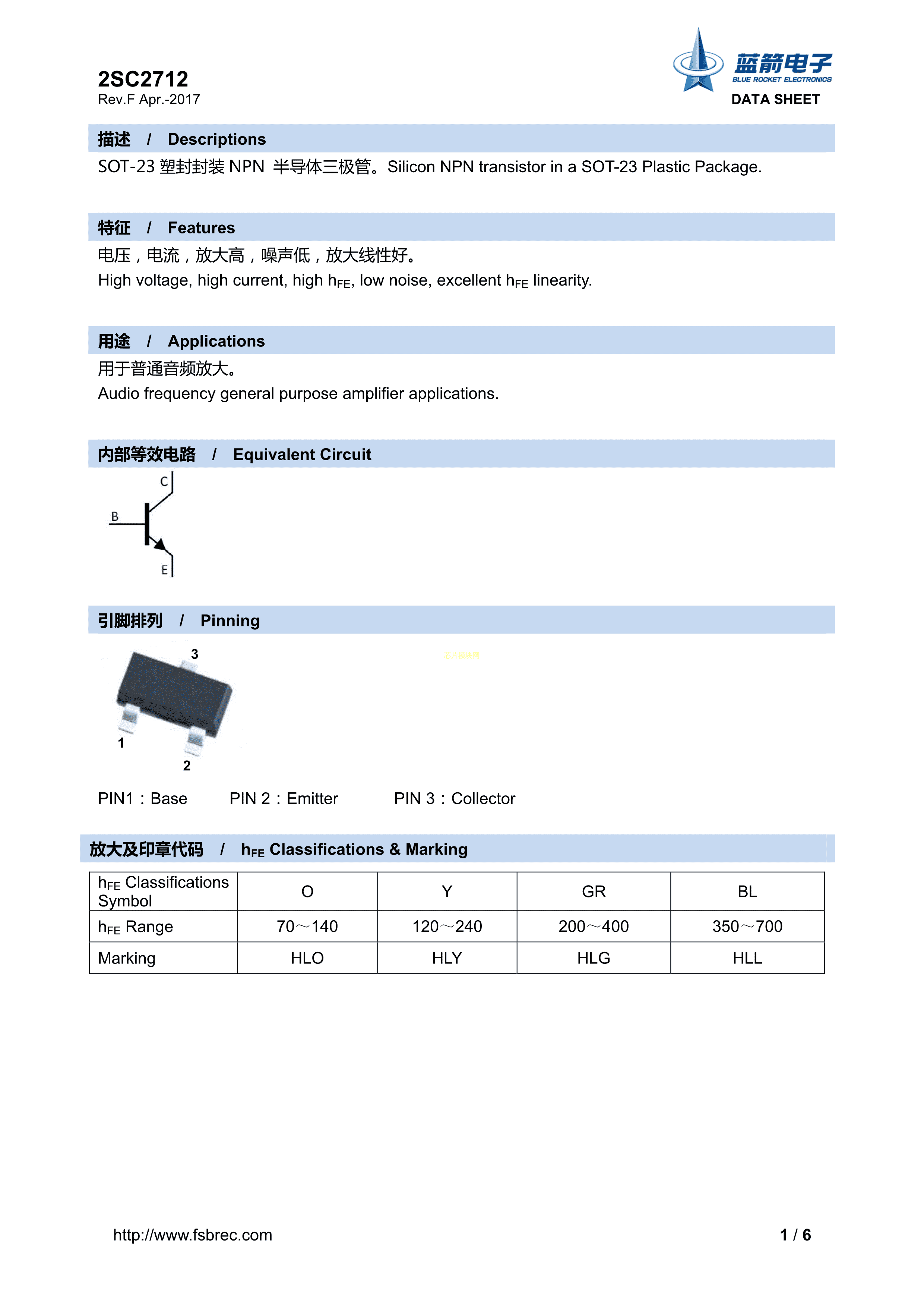 2SC2712-GR数据手册SOT-23封装BLUEROCKET(蓝箭)PDF规格书,中英文下载