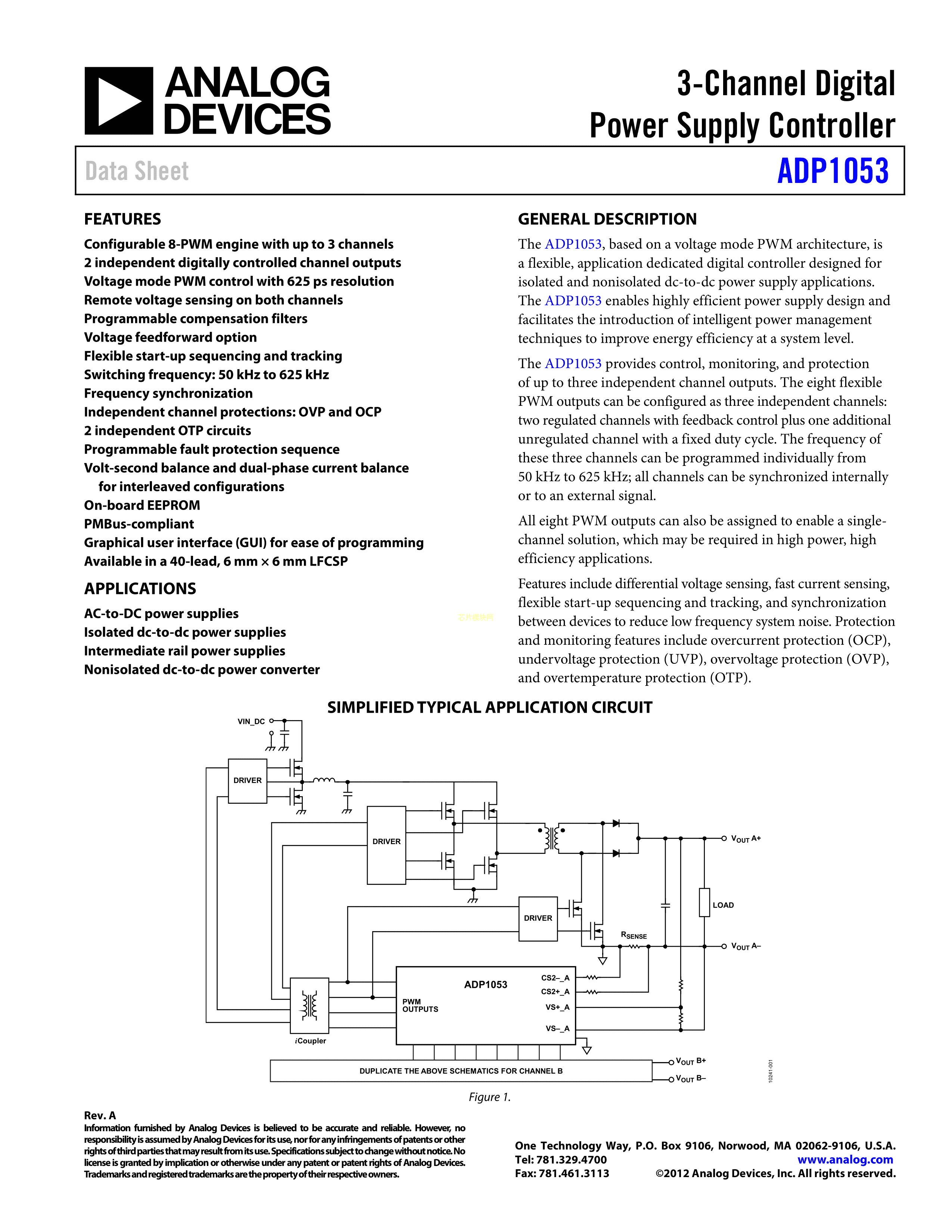 ADP1053ACPZ-RL数据手册LFCSP-40封装ADI(亚德诺)-LINEARPDF规格书,