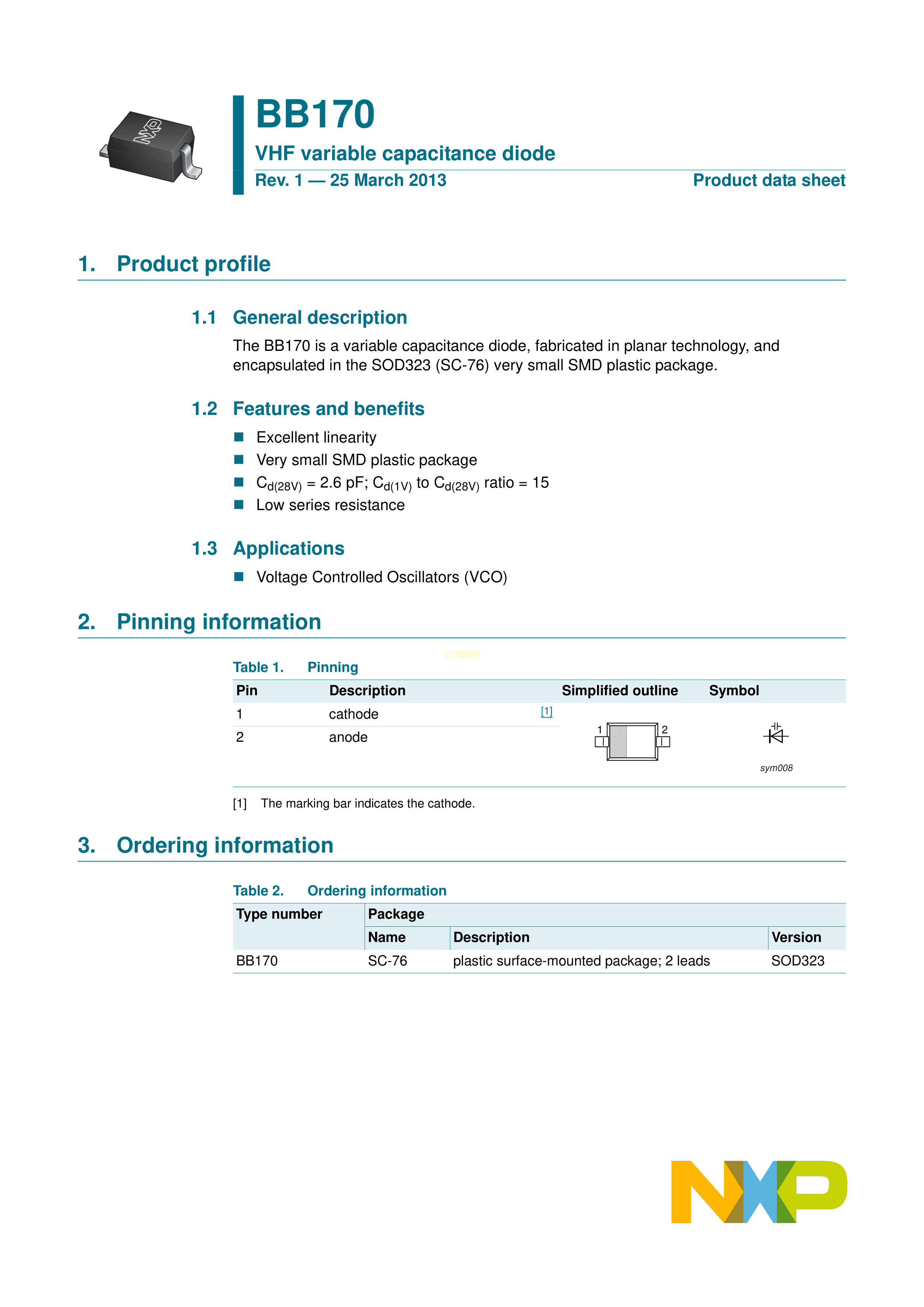 BB170X数据手册SOD-323-2封装NXP(恩智浦)PDF规格书,中英文下载