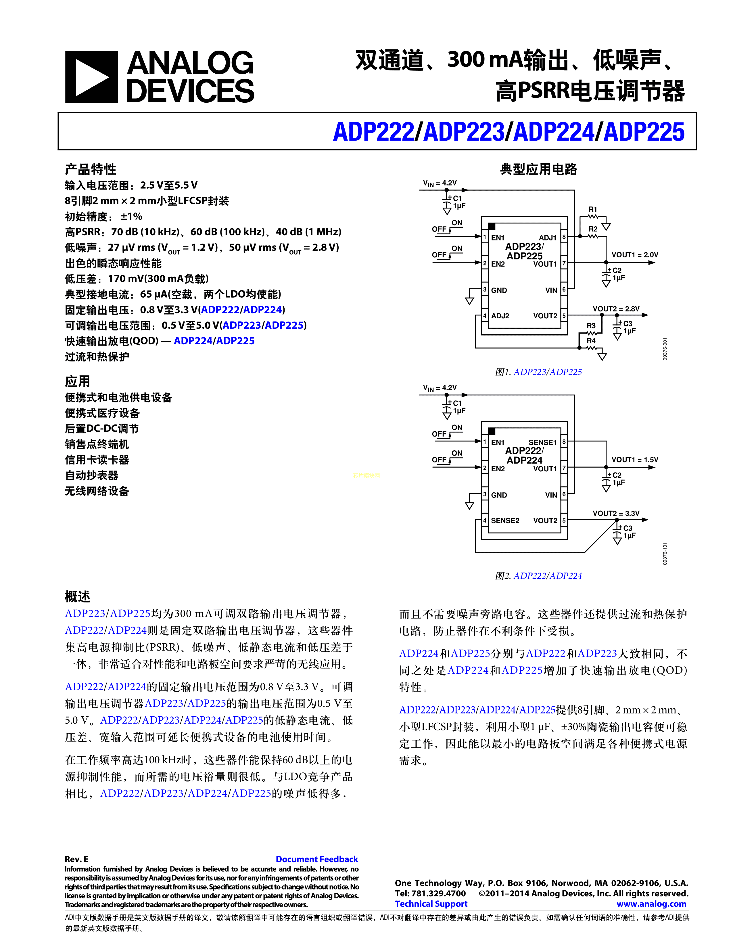 ADP223ACPZ-R7数据手册LFCSP-UD-8封装ADI(亚德诺)-LINEARPDF规格书
