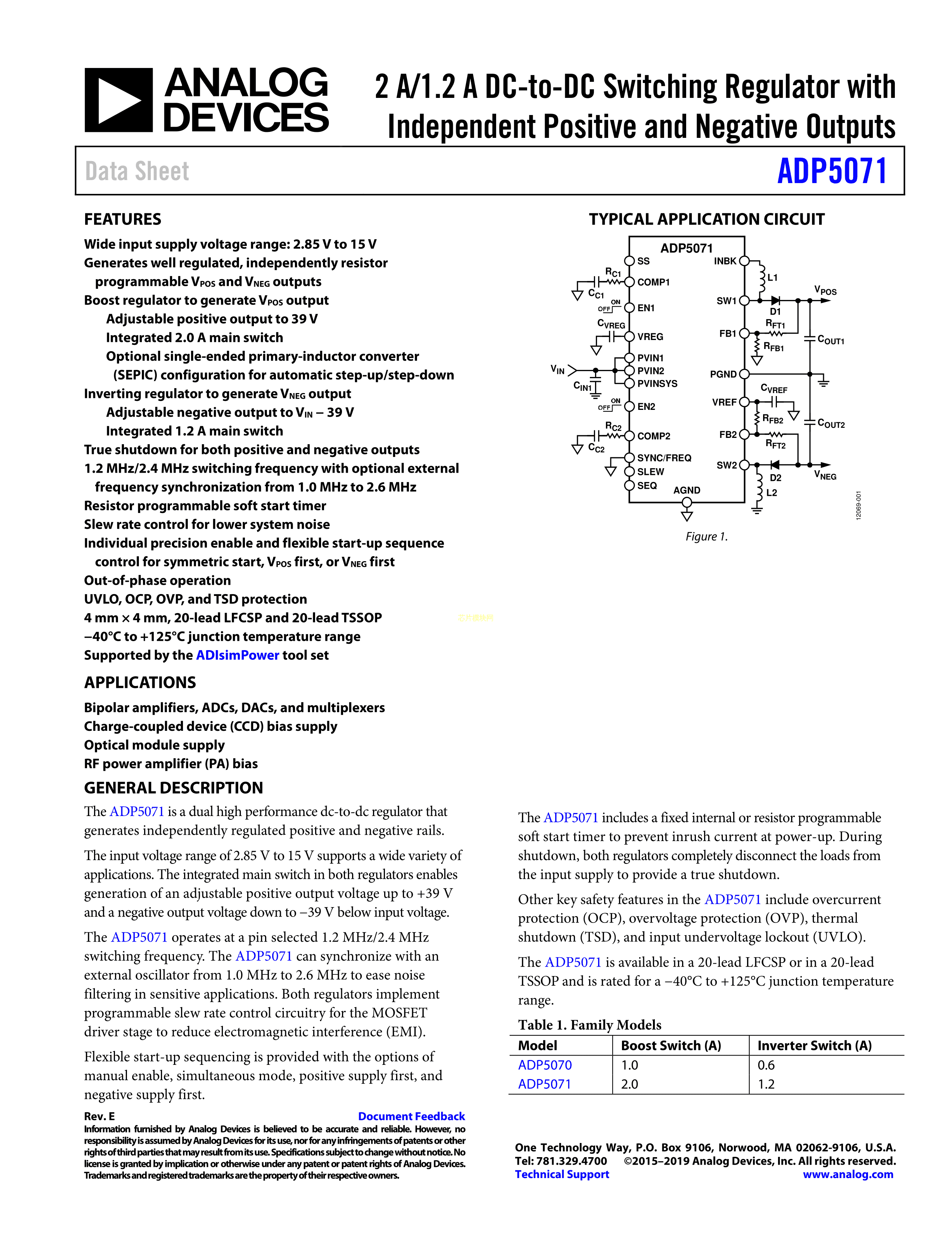ADP5071ACPZ-R7数据手册LFCSP-20封装ADI(亚德诺)-LINEARPDF规格书,