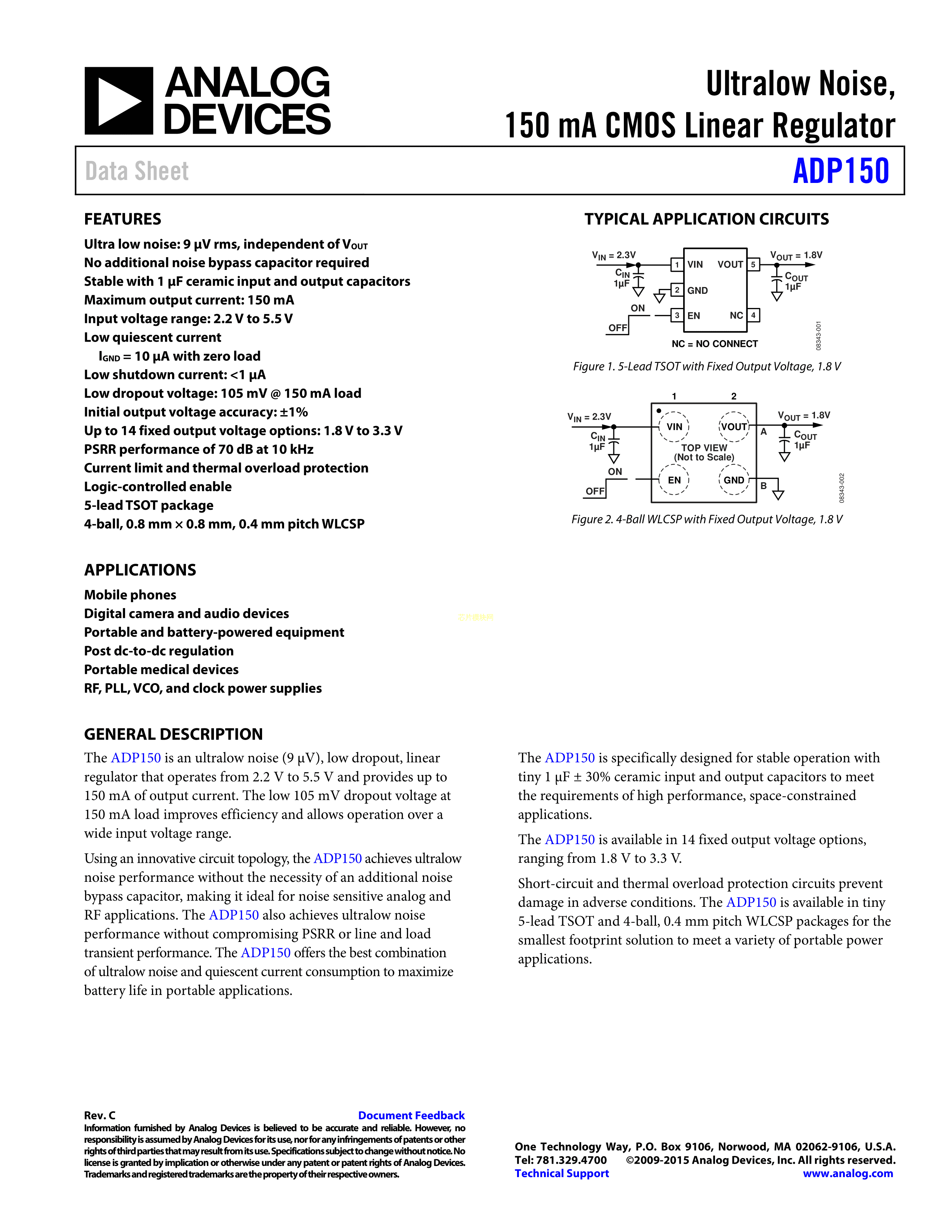 ADP150AUJZ-2.8-R7数据手册TSOT-23-5封装ADI(亚德诺)-LINEARPDF