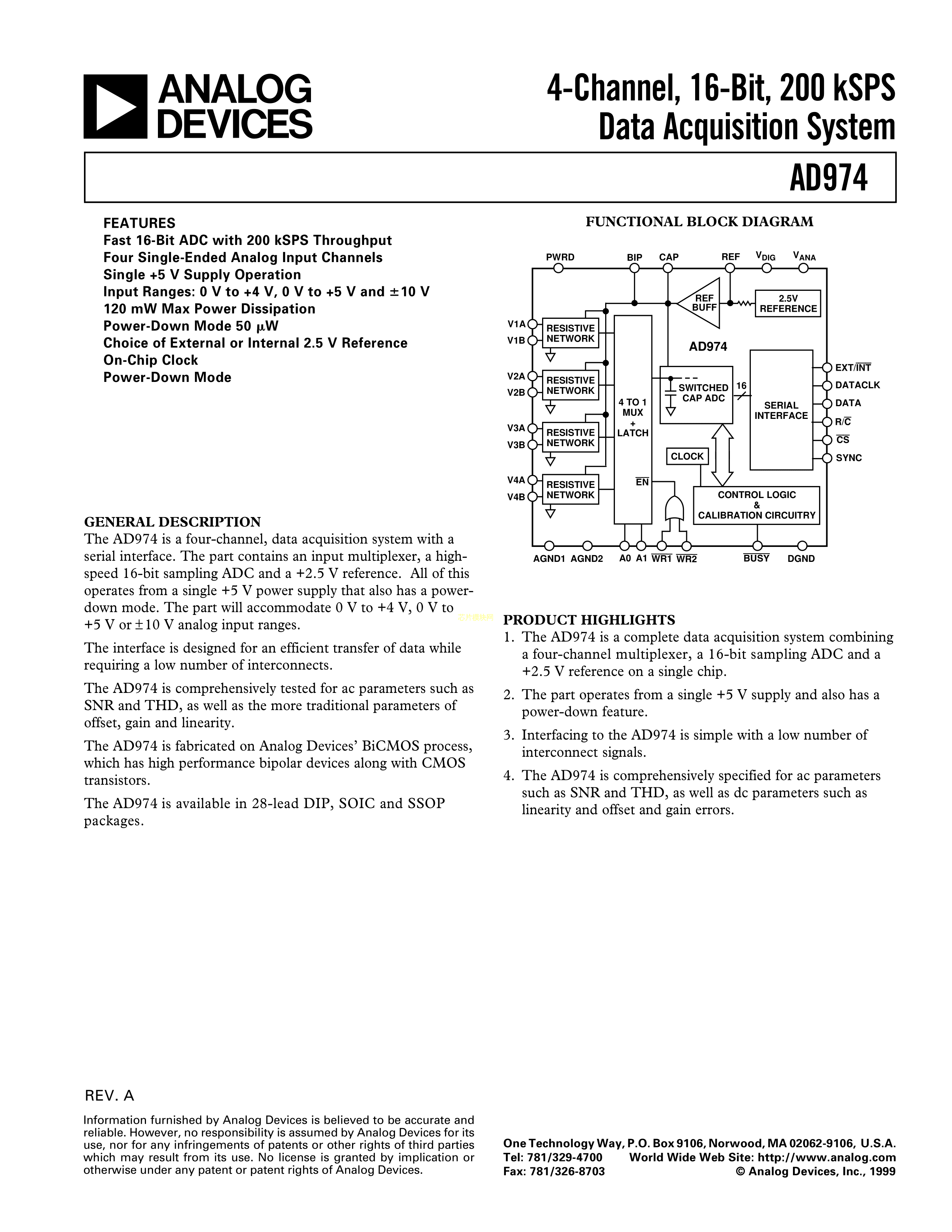 AD974BRSZ数据手册SSOP-28封装ADI(亚德诺)-LINEARPDF规格书,中英文下载